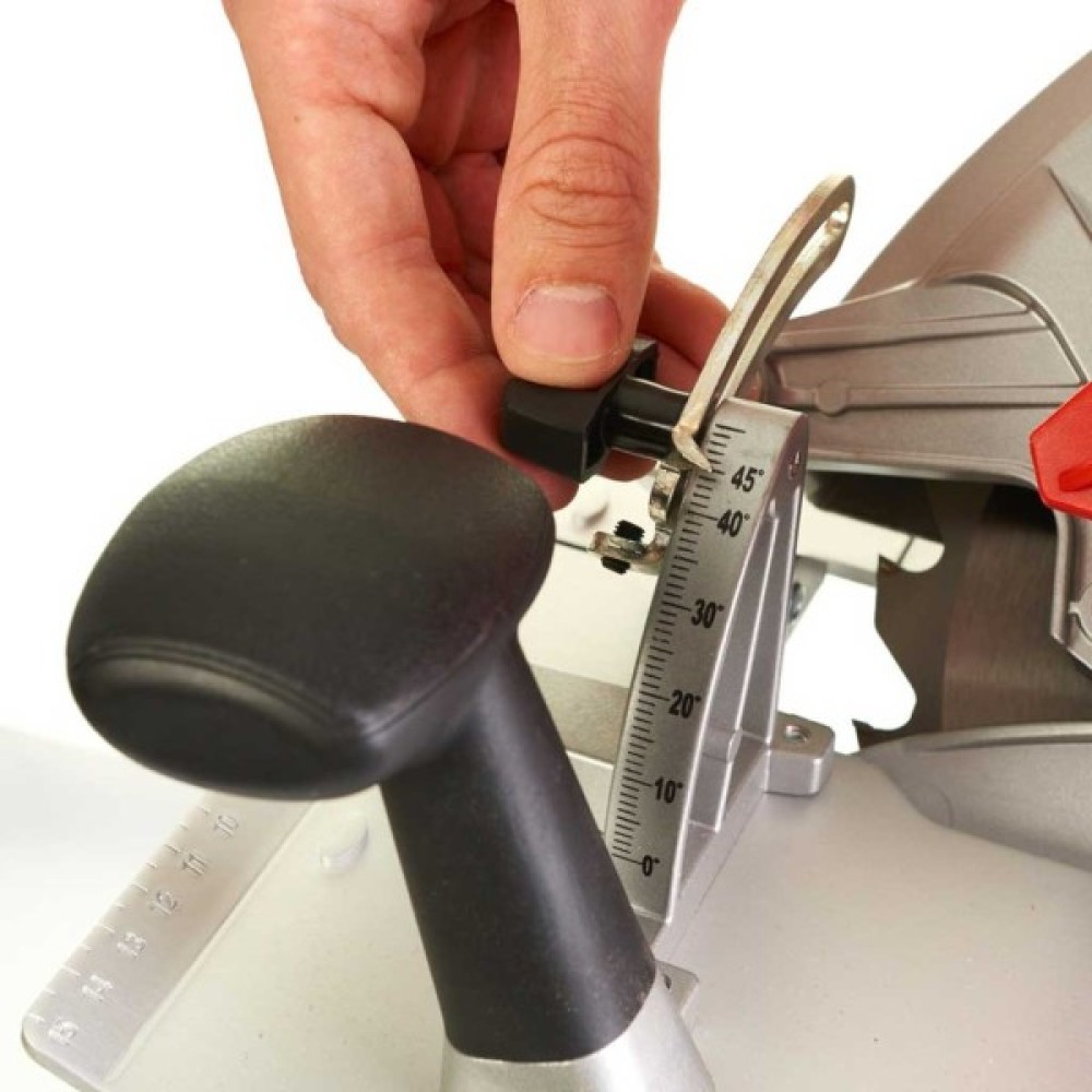 • Блокування шпинделя забезпечує швидку та легку заміну пильного диска.