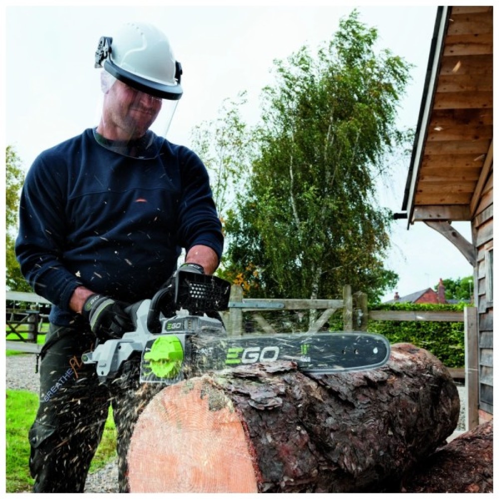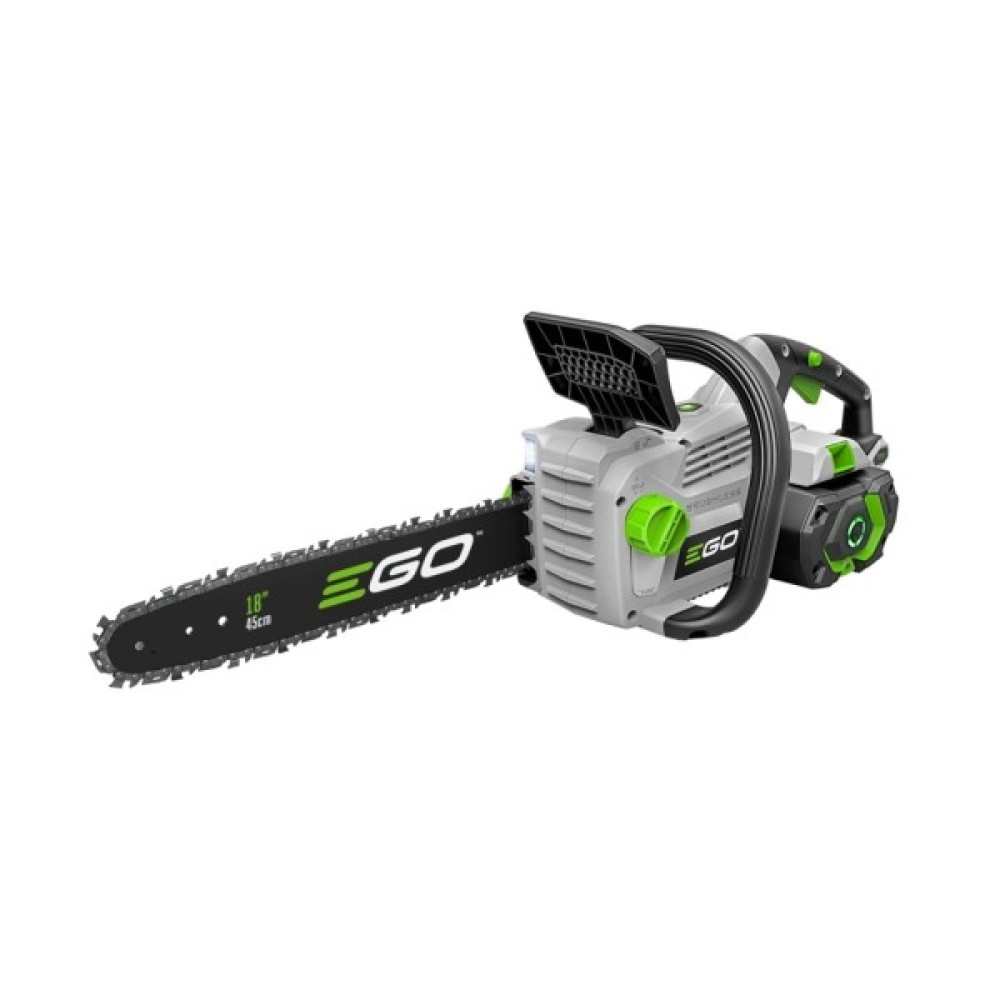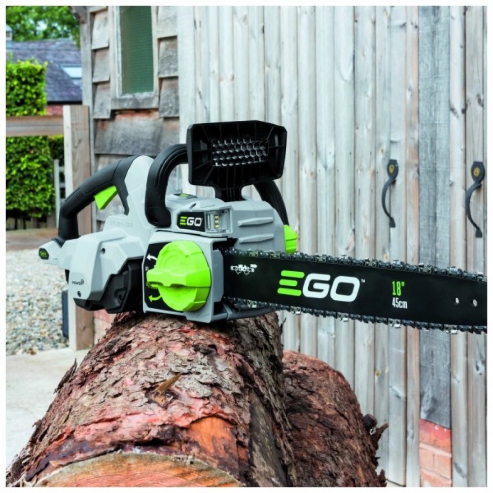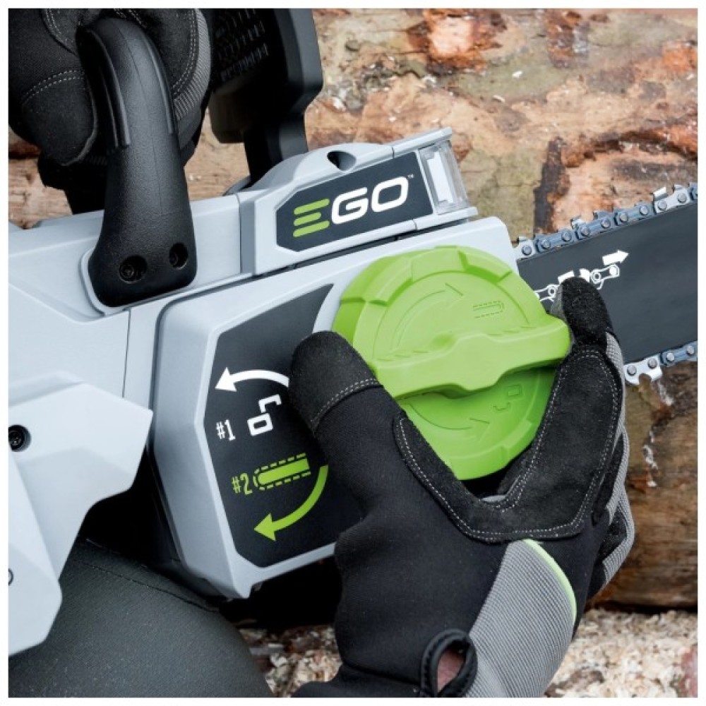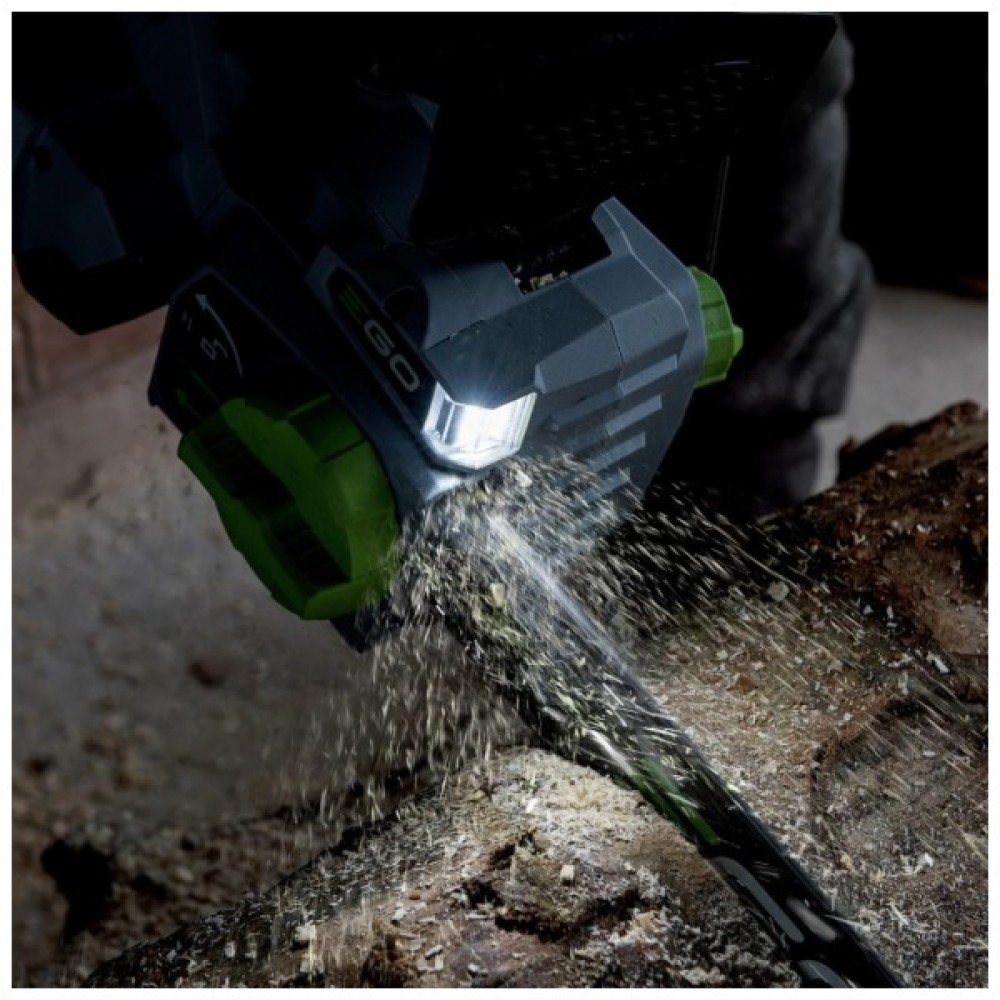 EGO CS1400E - продуктивна та потужна електропилка професійного класу, яку розробили спеціально для використання у промислових умовах. Інструмент обладнаний безщітковим електричним двигуном, який живиться від акумулятора 56 В. Пила комплектується шиною довжиною 45 см і фірмовим ланцюгом з кроком 3/8 дюйма, який рухається зі швидкістю 20 м/с. На корпусі передбачено яскраве LED-підсвічування для робіт у темний час доби. Для збільшення безпеки користувача в конструкції є захисний щиток з механічним гальмом і шипи.