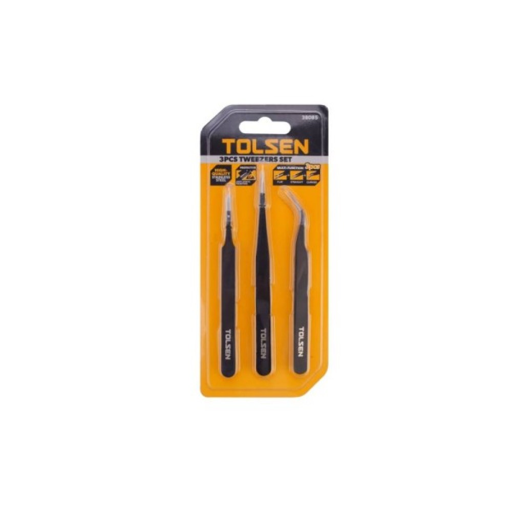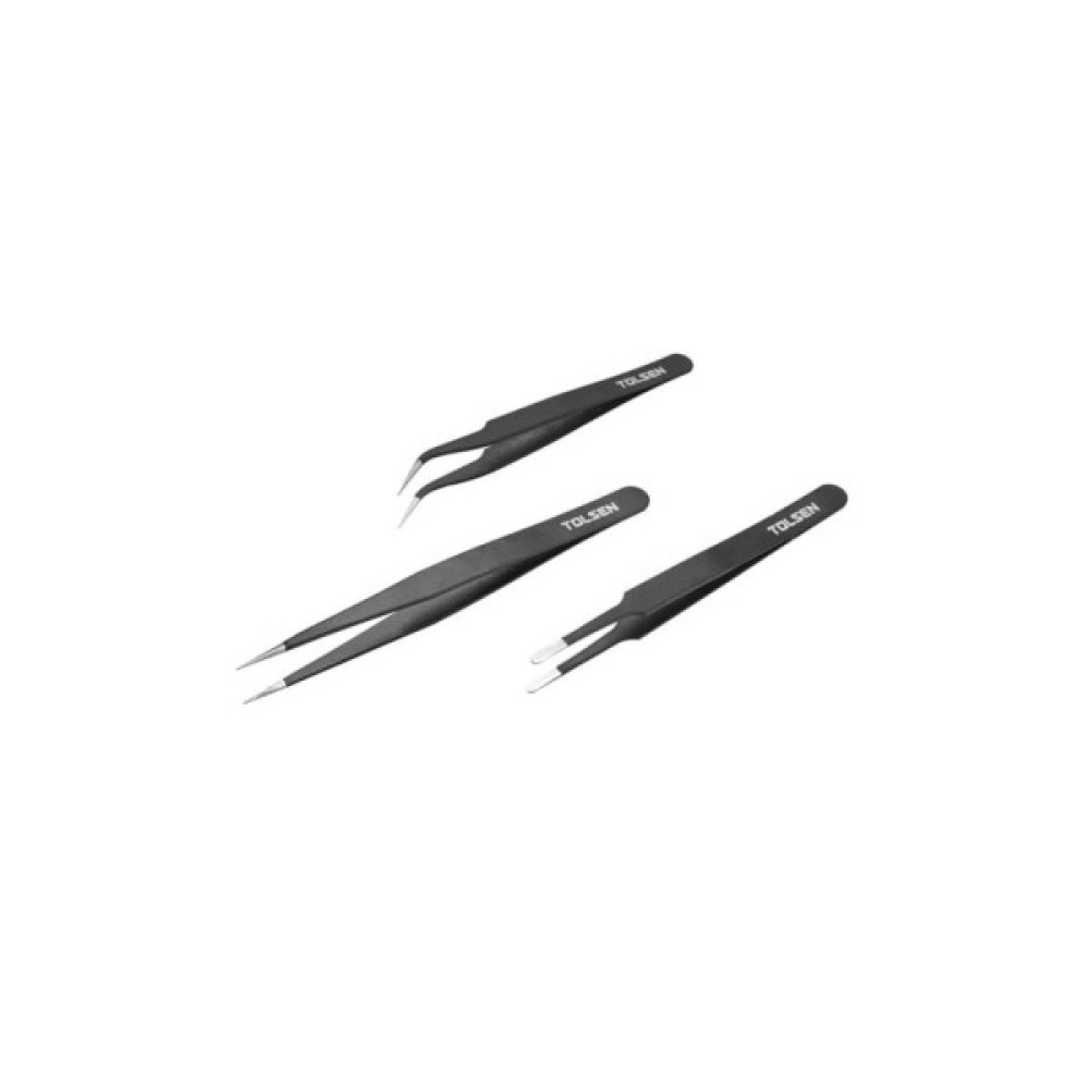 Пінцет Tolsen 3 шт нержавійка антистатичне покриття (38085)