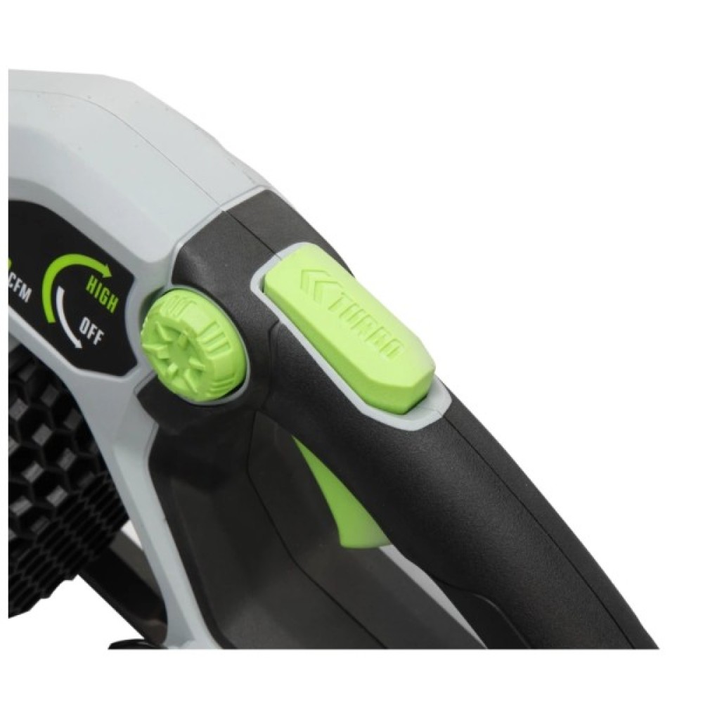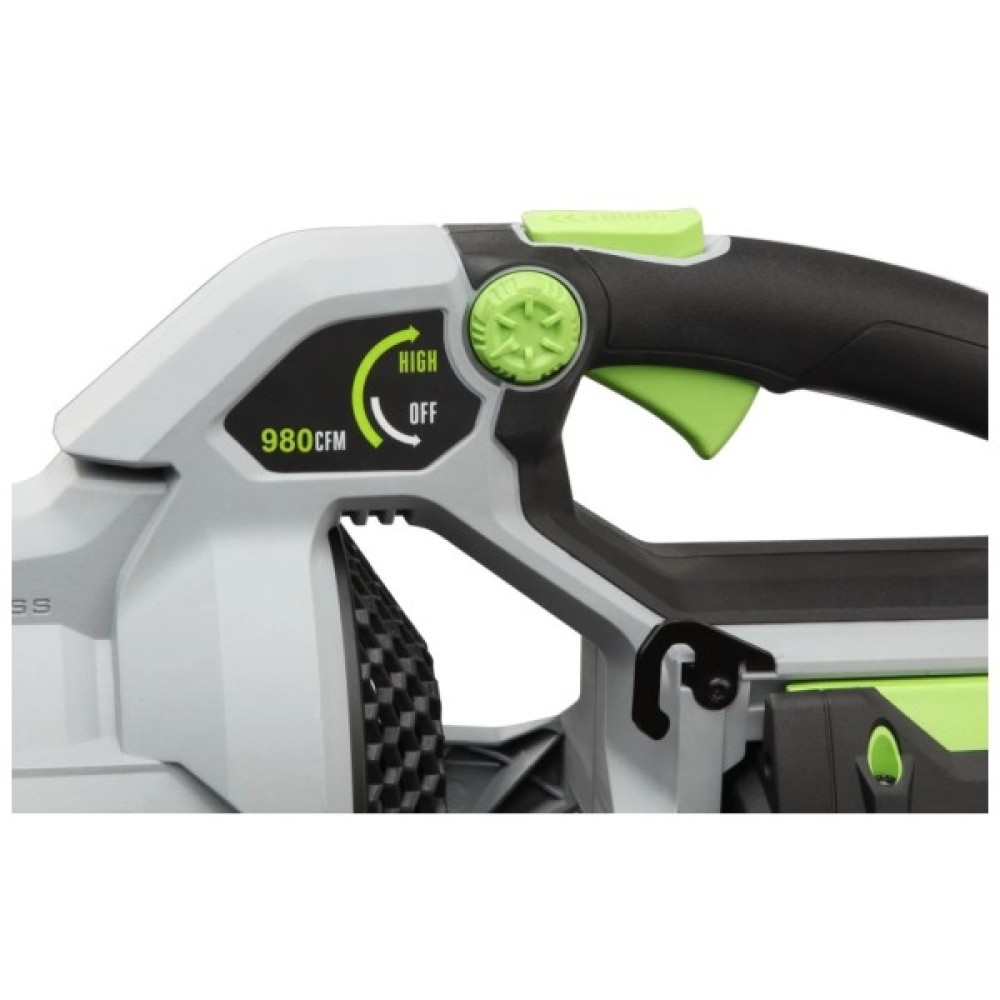 Садовий повітродув EGO LB5800E - потужний та надійний інструмент, який дозволяє швидко та зручно прибрати листя на великих майданчиках. Високу потужність та продуктивність забезпечує безщітковий двигун, який живиться від Li-ion акумуляторів EGO 56V. Завдяки особливій формі турбіни, повітродув здатний видати до 986 куб.м повітря за годину на швидкості до 270 км/год. Швидкість потоку можна плавно регулювати, для максимальної продуктивності на корпусі є окрема кнопка BOOST. Час роботи повітродуву залежить від підключеного акумулятора та вибраного режиму роботи.
