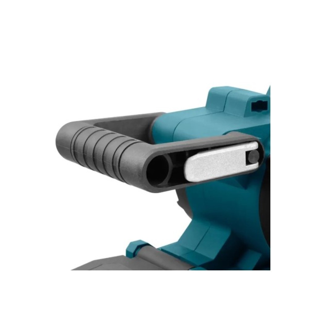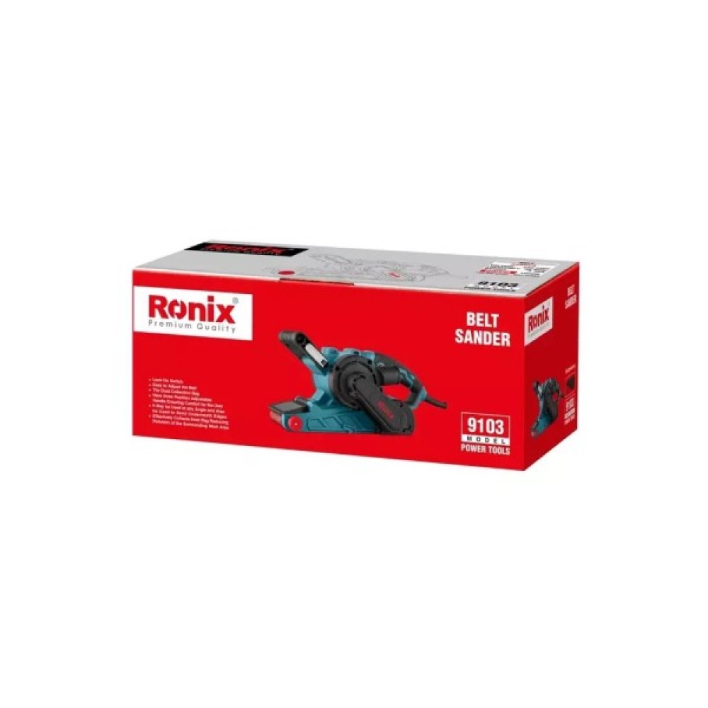 Ronix 9103 має ергономічний дизайн та важить всього 3.4 кг, що робить її легкою та зручною у використанні. Регульована система стрічок дозволяє точно утримувати стрічку в центрі під час роботи, що сприяє більш якісному виконанню завдань. Додаткова рукоятка, регульована в трьох положеннях, забезпечує оптимальне управління і комфорт користувача.