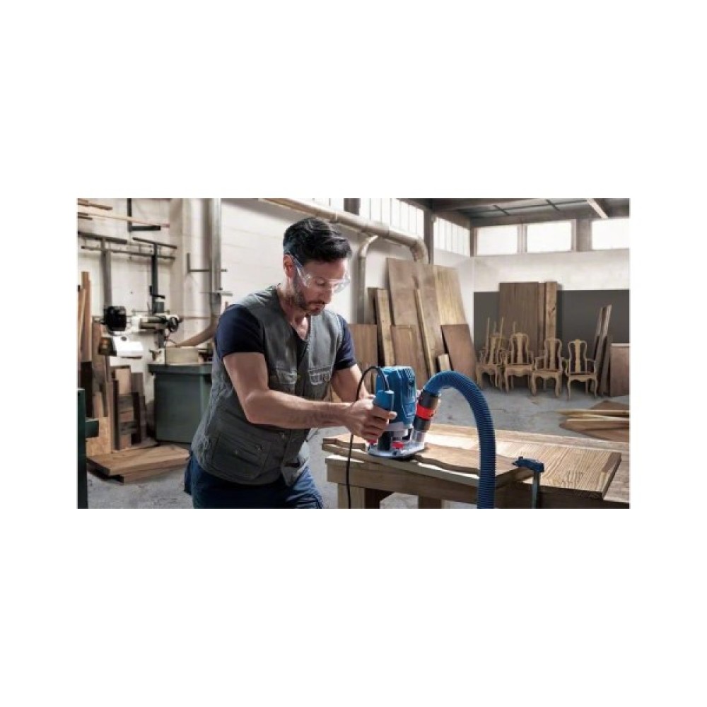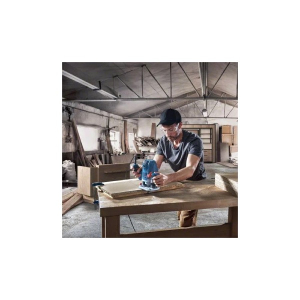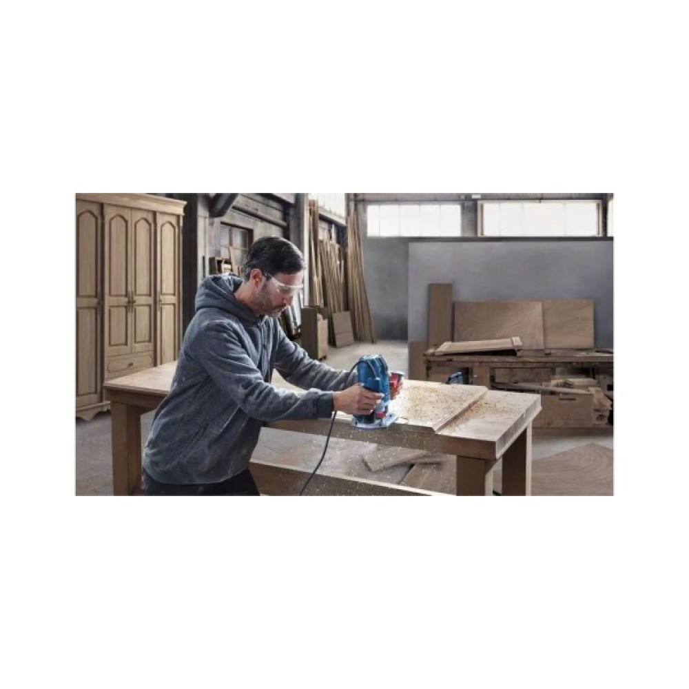 Фрезер Bosch GOF 130 06016B7000 є компактним інструментом, за допомогою якого можна виконувати різнопланові завдання з фрезерування: вирізати пазли, проробляти отвори та силуети у профілі, здійснювати копіювальне вирізання, а також виготовляти отвори у деревині та плитах ДВП. Агрегат оснащений міцним корпусом та опорною плитою, а також двома ручками ергономічної форми, зручно лягають у руки.
