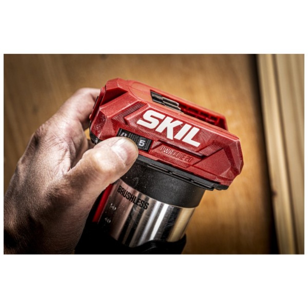 Skil VA1E3170CA оснащений цифровим безщітковим двигуном, який забезпечує підвищену ефективність та термін служби в 10 разів довший, ніж у класичних щіткових двигунів. Ця технологія забезпечує більшу потужність та постійну швидкість, дозволяючи користувачеві отримувати відмінну якість різання. Регулювання швидкості дозволяє фрезеру адаптуватися до різних типів матеріалів, забезпечуючи оптимальні результати для кожного застосування.