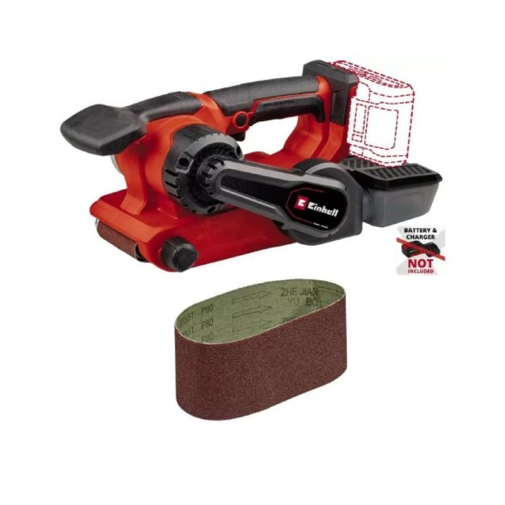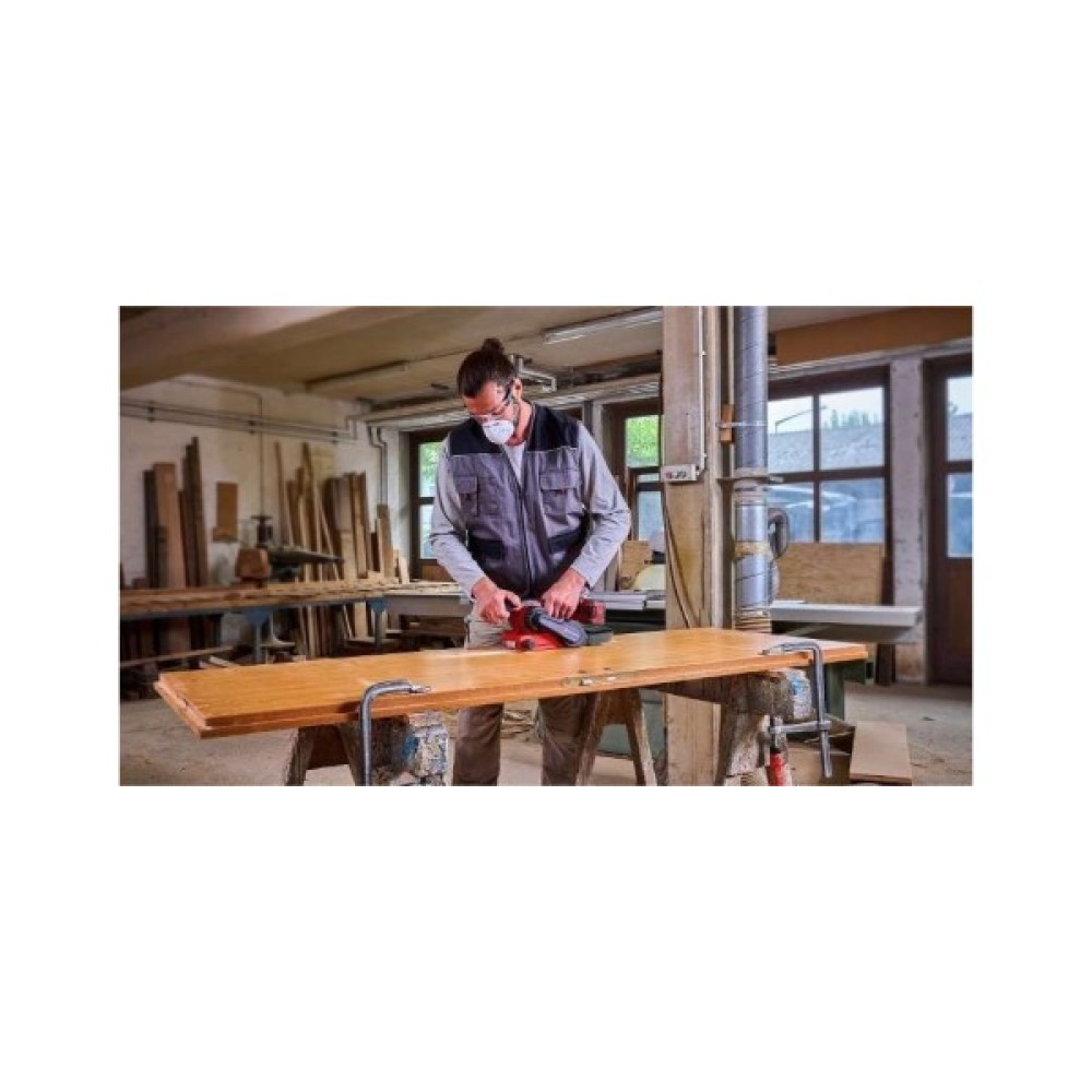 Завдяки продуманому дизайну, стрічкова шліфувальна машина Einhell TP-BS 18/457 Li BL - Solo може використовуватись і в стаціонарному положенні. Регулювання натягу шліфувальної стрічки здійснюється без використання інструментів, що полегшує процес заміни стрічки. В комплекті з пристроєм ви отримаєте 3 шліфувальні стрічки P80, які дозволять вам зразу ж приступити до роботи.