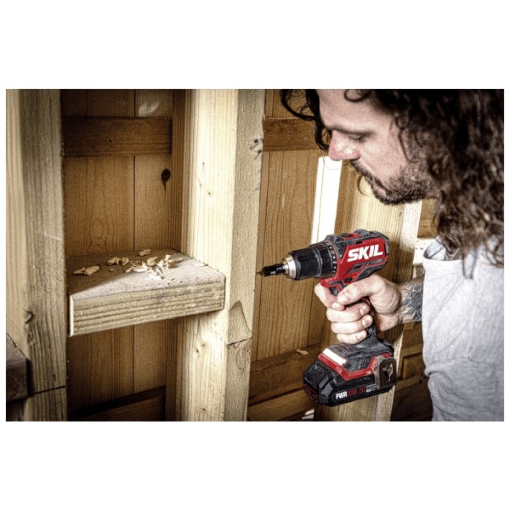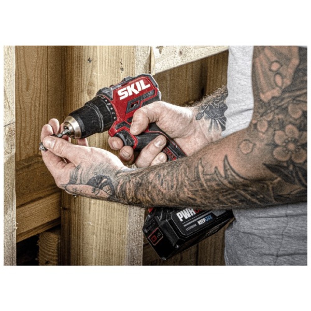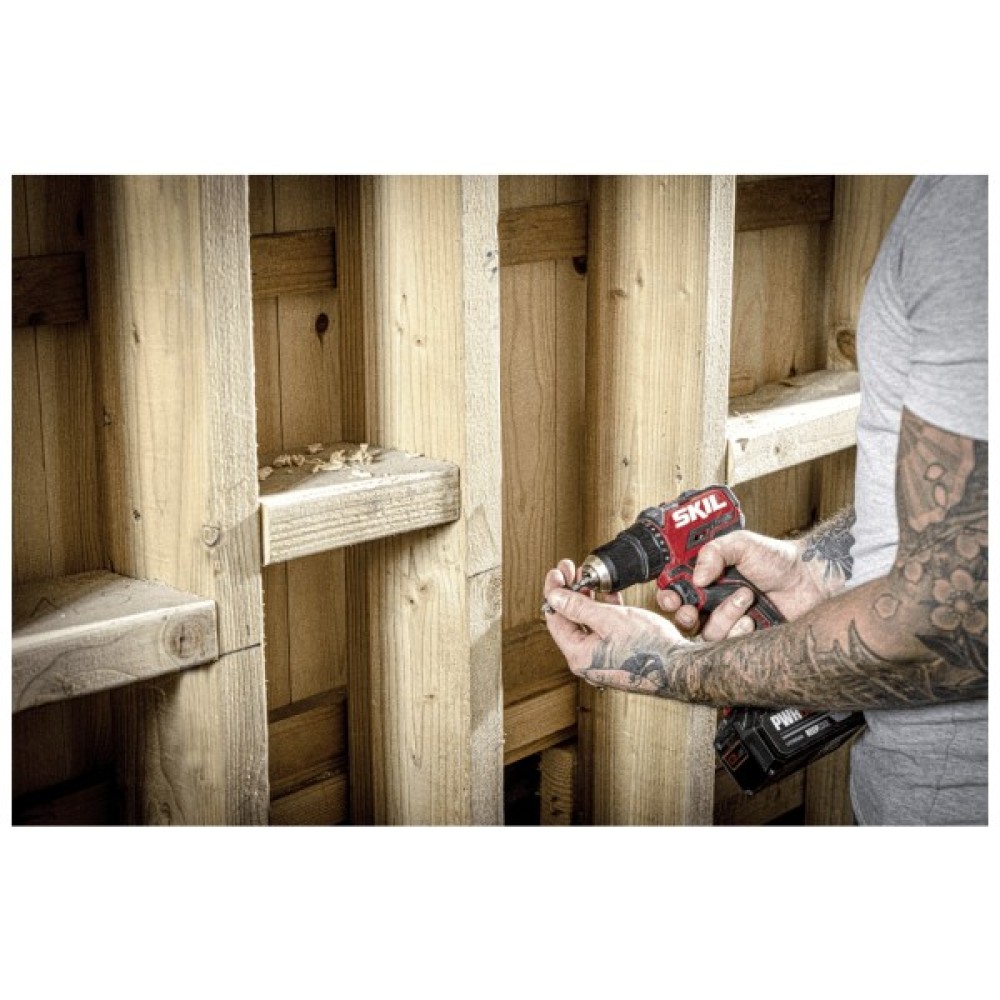 Акумуляторний дриль «20V Max» 3065 є частиною лінійки компактних безщіткових пристроїв SKIL. Ці інструменти надзвичайно компактні та пропонують поєднання високої продуктивності, довговічності та неперевершеного рівня зручності. Як і всі інші акумуляторні інструменти SKIL ‘20V Max’, ця модель живиться від передової в галузі передової технології акумулятора та зарядного пристрою ‘PWRCORE 20™’. Наша безщіточна акумуляторна дриль SKIL 3065 задовольнить усі ваші потреби для найважчих робіт із загвинчування шурупів і свердління в деревині та металі. Завдяки компактній і легкій конструкції працювати над головою або у важкодоступних вузьких місцях – це просто. Цифровий безщітковий двигун забезпечує більшу потужність, ефективність і в 10 разів довший термін служби, ніж аналогічний щітковий двигун. Інструмент має дві передачі та налаштування крутного моменту 17+1 для точного свердління та загвинчування. Модель 3065 оснащена 13-мм швидкозатискним патроном з храповим механізмом для оптимальної міцності захоплення біта. Чудова видимість заготовки забезпечується вдосконаленим світлодіодним підсвічуванням із 2 режимами, включаючи режим ліхтарика. Автоматичне блокування шпинделя дозволяє легко змінювати аксесуари. Загалом, цей універсальний інструмент справді пропонує все, що вам потрібно: надійну технологію літій-іонного акумулятора, змінну швидкість для повного контролю та м’яку рукоятку, яка забезпечує додатковий комфорт при роботі. SKIL 3065 CA постачається з двосторонньою викруткою та застібкою для пояса.