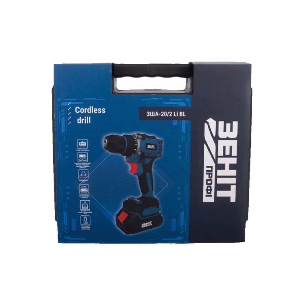 Шуруповерт Зеніт Профі ЗША-20/2 Li BL, 20V TekPower, 2x1.5Ah (854605)