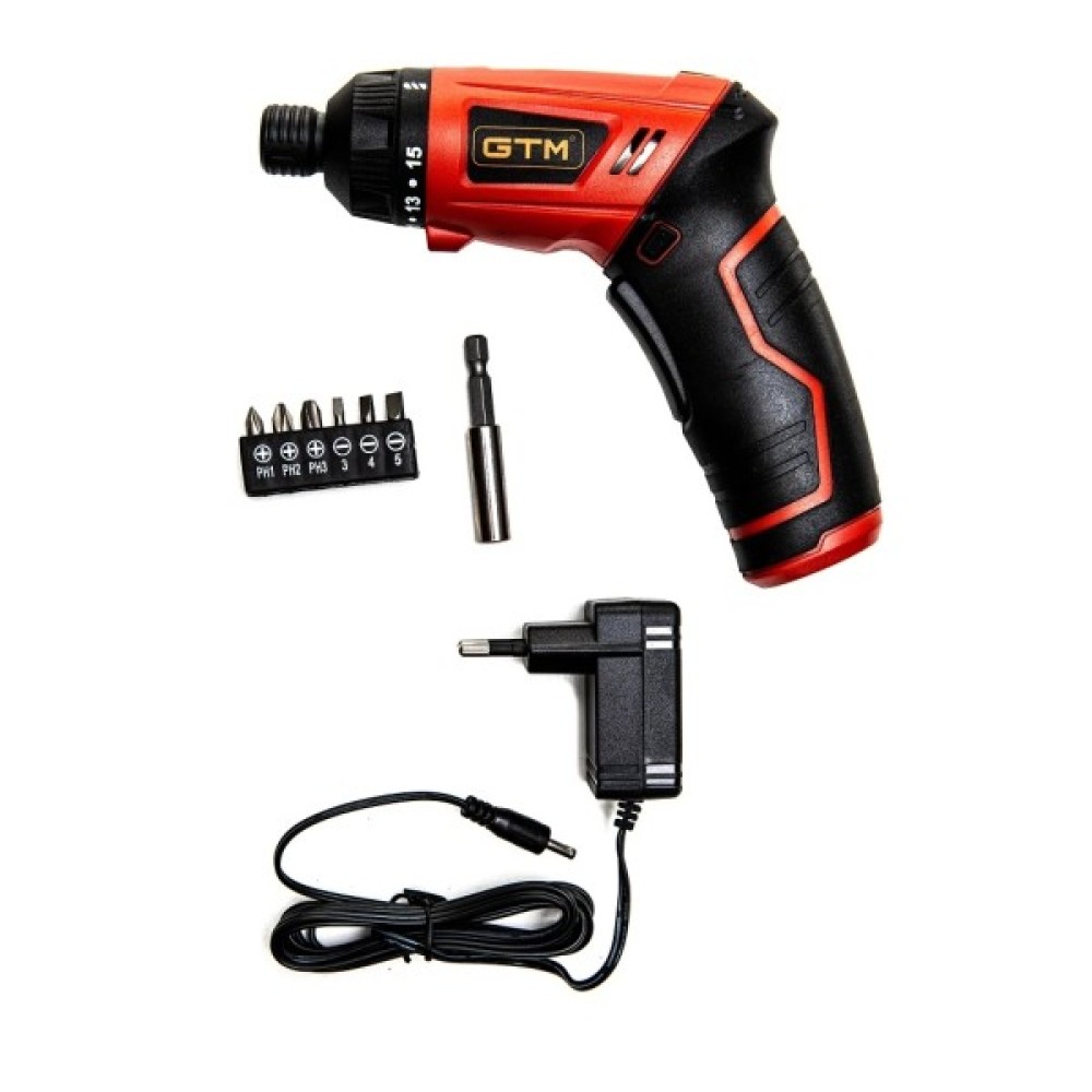 GTM SD3,6/5 - акумуляторна викрутка, розроблена спеціально для домашнього використання та DIY-ентузіастів. Працює від вбудованого акумулятора ємністю 1,5 Агод. Максимальний крутний момент при цьому досягає 5 Нм. Цього буде достатньо для складання меблів і закручування невеликих шурупів при поточному ремонті. Додатково викрутка має вбудований LED-ліхтарик для роботи при недостатньому освітленні.