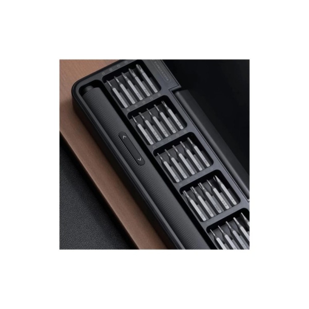 У комплекті із цією викруткою йде 25 прецизійних бітів різних типів, виготовлених зі сталі S2 для максимальної міцності та стійкості до зношування. Завдяки цьому, викрутка відповідає вимогам щоденного обслуговування та ремонту різноманітних пристроїв, таких як дрони, мобільні телефони, годинники і багато інших.
