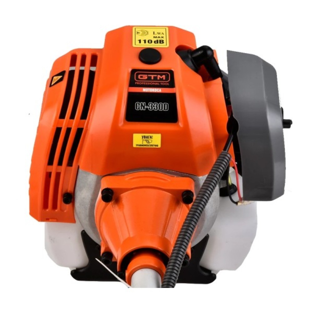 GTM CN330D - бензинова мотокоса (тример) побутового класу, призначена для косіння трави, заростей і кущів діаметром до 20 мм на дачі, садовій ділянці або сільській місцевості. Коса оснащена 2-тактним бензиновим двигуном потужністю 1.05 кВт (1,4 к. с.) з підвищеним крутним моментом. Як паливо використовується суміш бензину з мастилом у пропорції 40:1 (25 мл мастила на 1 л бензину).