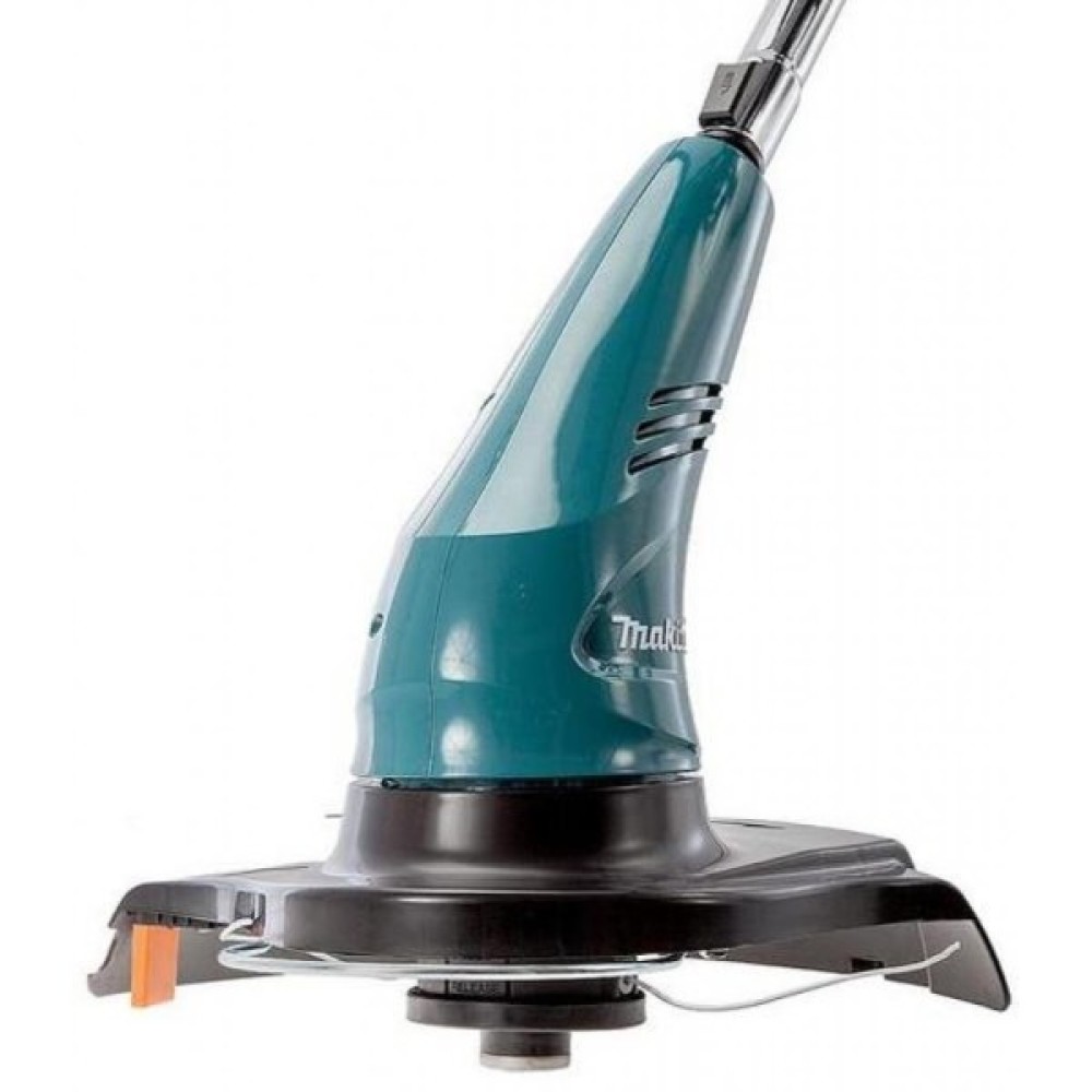 Тример Makita UR3000 – це високопродуктивний садовий інструмент, основу якого, рушійну силу, становить електродвигун потужністю 450 Вт, розрахований на інтенсивну експлуатацію в особливо складних робочих умовах. Модель ефективно обробляє різні присадибні ділянки, є незамінною, якщо потрібно якісно зрізати газонну траву, або видалити рослинність, що залишилася після скошування газонокосаркою. Пристрій оснащений боковим вимикачем типу слайдер, що гарантує безпеку при експлуатації, непередбачене відключення механізму від мережі попереджає фіксатор для кріплення подовжувача. З тримером Makita UR3000 комфортно і зручно працювати, чому сприяє наявність рукоятки D-образного виду, виконаної за законами ергономіки. Для скошування мокрої трави даний інструмент не підходить, так як двигун розташований внизу, наднадійність в роботі досягається за рахунок того, що в конструкції немає редуктора, а косильна головка ідеально кріпиться прямо на валу двигуна. Технічні параметри роботи тримера Makita UR3000, цілком влаштовують – максимальна ширина зрізу досягає 300 мм.