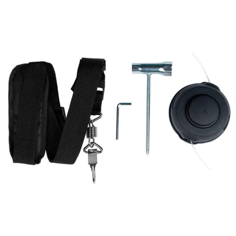 Комплектація Інструкція з експлуатації; Захисний кожух; Ремінь на плече; тример; косильна головка; ніж для трави; без акумулятора та зарядного пристрою