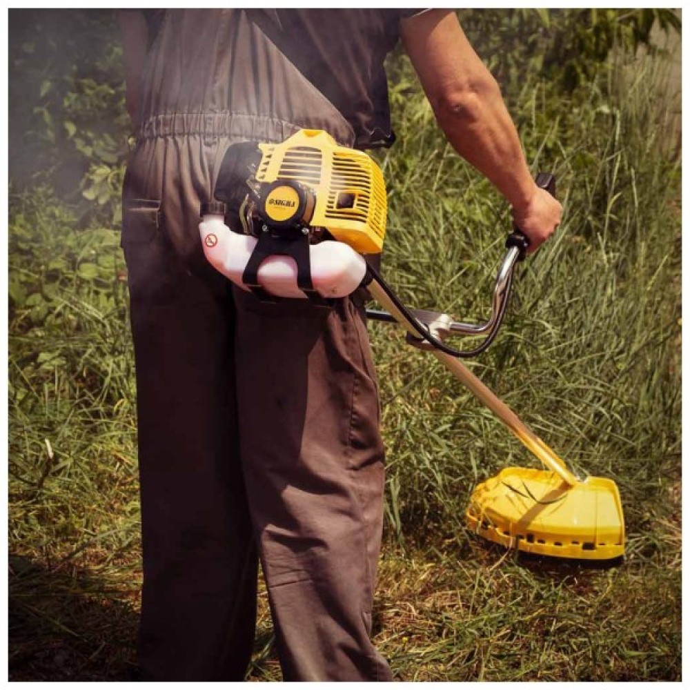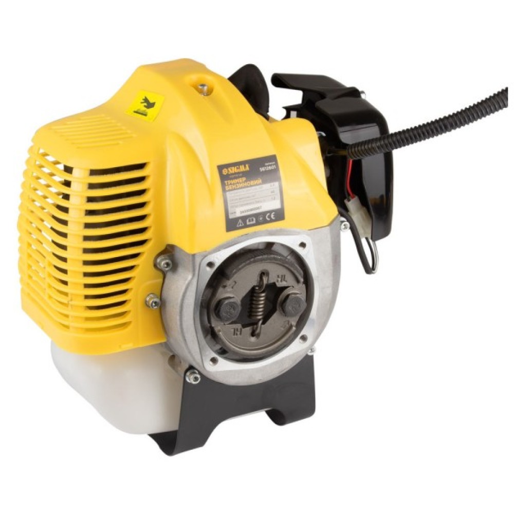 Бензиновий тример Sigma являє собою ручний моторизований виріб з верхнім розташуванням двигуна внутрішнього згорання. Принцип дії виробу дуже простий: обертальний рух від двигуна внутрішнього згорання передається на вал. Конічний редуктор здійснює механічну передачу крутного моменту від валу на шпиндель, на якому закріплений ніж або котушка з ліскою