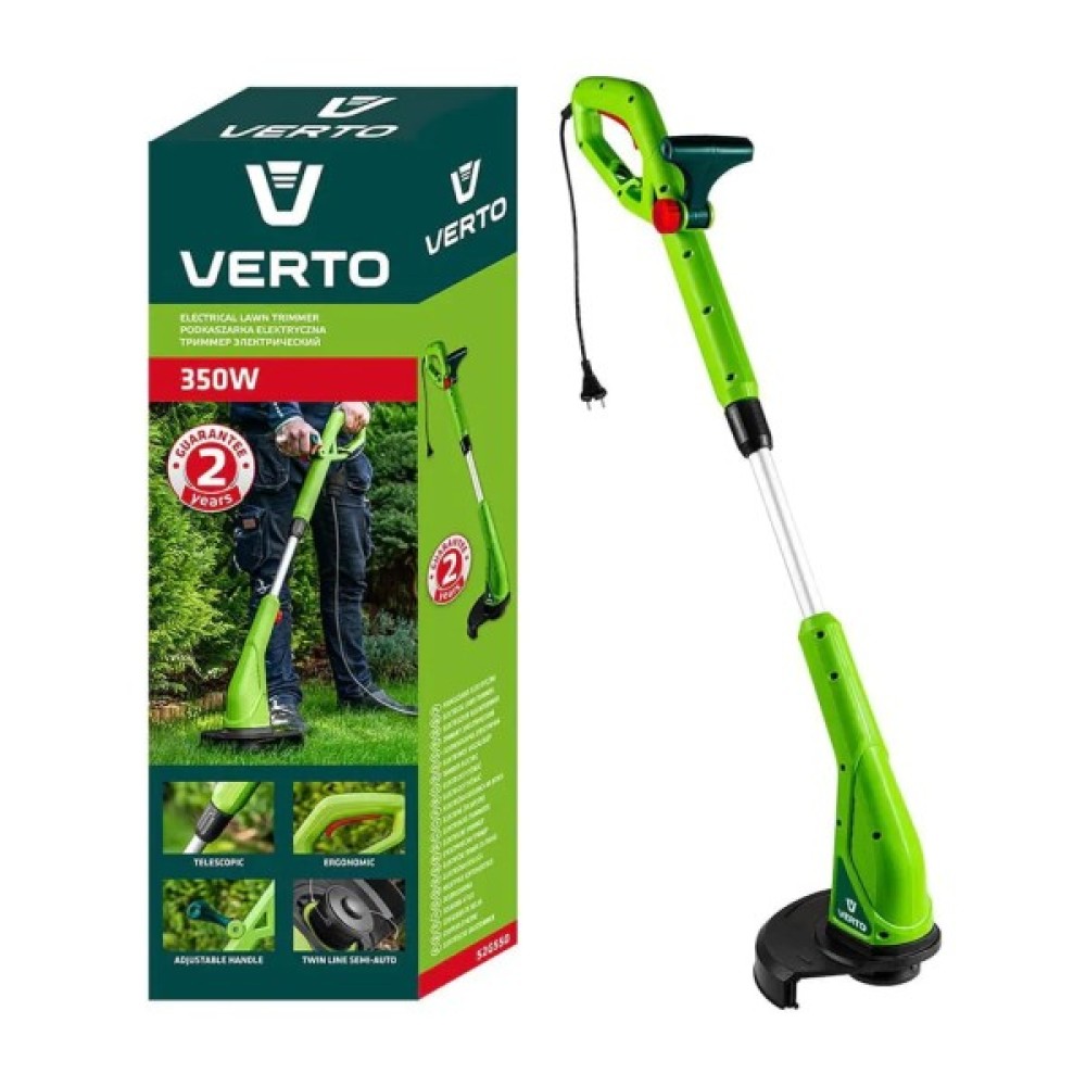 Тример садовий Verto електричний, 350 Вт, 25 см, 93 дБ, телескопічна ручка, 2.2 к (52G550)