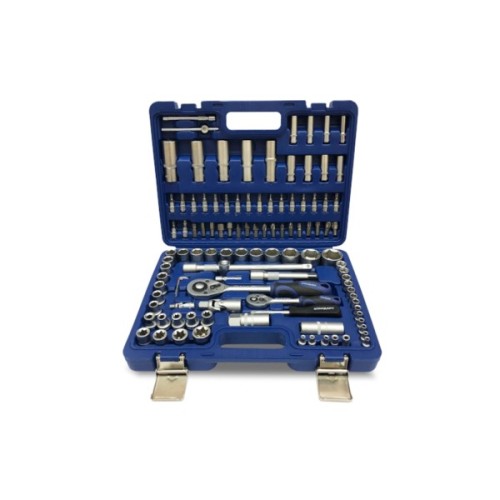 Комплектація набору торцеві головки; біти; шестигранні/зіркоподібні ключі; тримач для біт; тріскачка; подовжувач; кардан шарнірний; головки для свічок запалювання