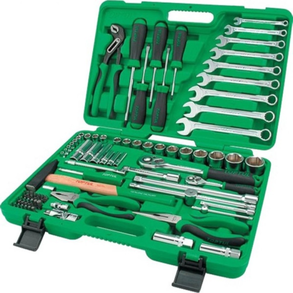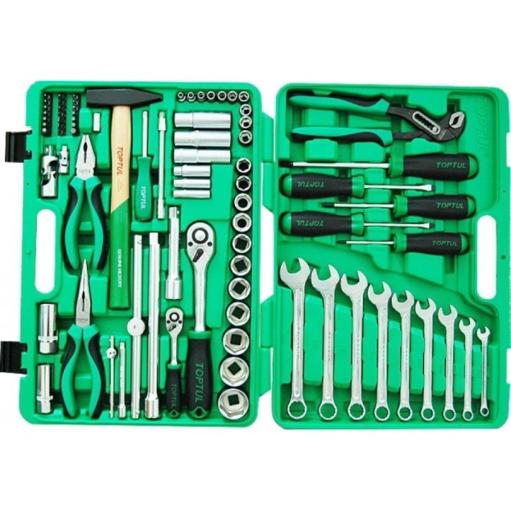 Набір інструментів Toptul постачається у зручній та міцній валізі, що робить його транспортування і зберігання максимально зручним. Високоякісне виконання кожного елемента гарантує його тривале використання, а різноманітність включених інструментів дозволяє вирішувати навіть найскладніші задачі. Цей набір — ідеальний вибір для тих, хто цінує професійність і надійність!