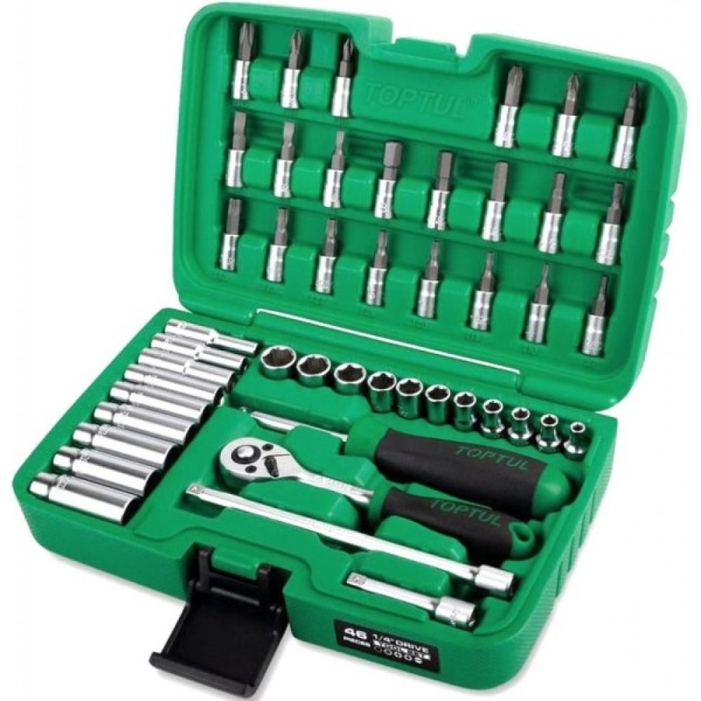 Якщо ви шукаєте надійний інструмент для професійного використання або вдосконалення своєї майстерні, автомобільний набір інструментів Toptul 1/4" 46од. (GCAI4601) стане вашим вірним помічником у досягненні найвищих результатів і надійності у всіх роботах.