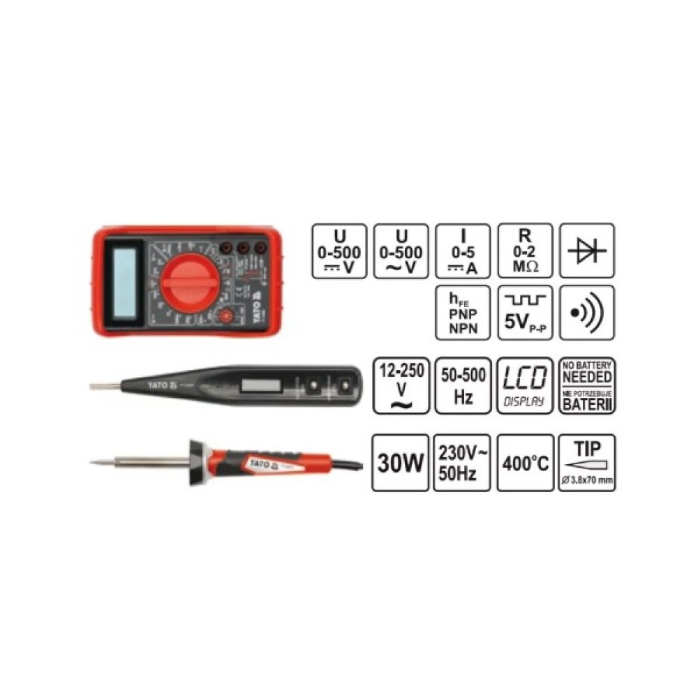 Важливе місце у наборі займає мультиметр, призначений для вимірювання напруги, опору та інших ключових параметрів електричних систем. Ізострічка та ніж стануть надійними партнерами у процесі ізоляції і різання, забезпечуючи безпеку і зручність.