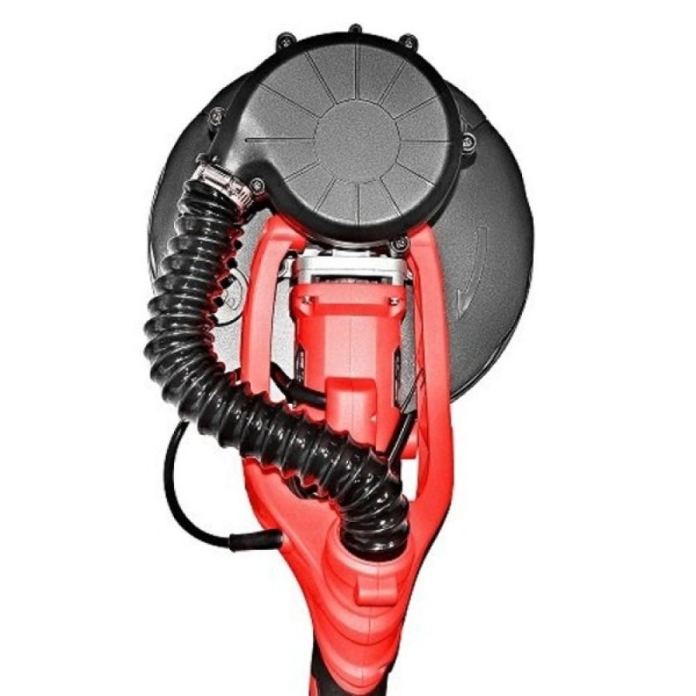 Особливі переваги цієї шліфувальної машини включають систему пиловідведення, яка значно спрощує роботу завдяки зняттю пилу у знімний пилозбірник або через підключення до пилососа. Це робить процес шліфування більш чистим і комфортним, особливо при виконанні великих обсягів робіт.