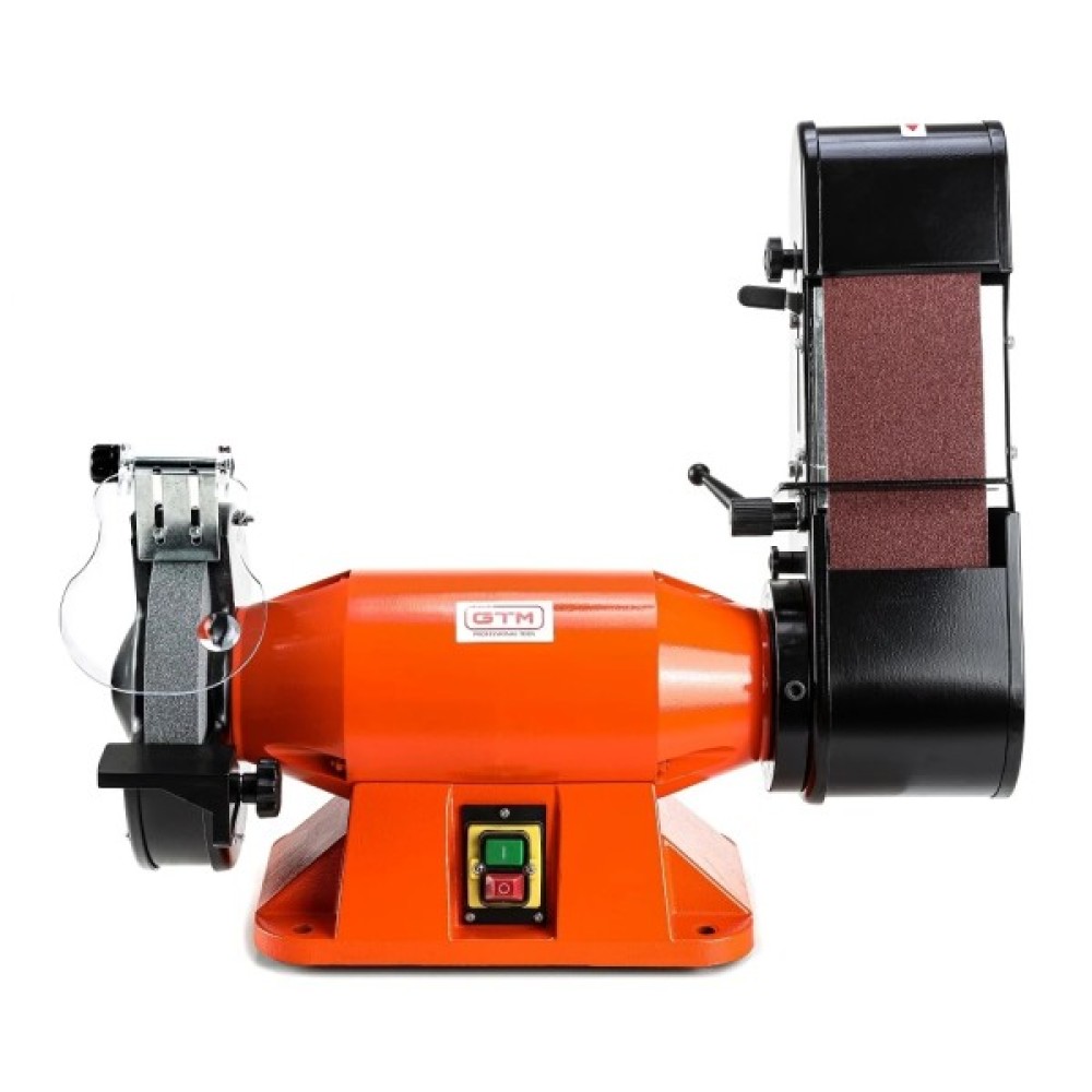 GTM MDB100/200HD - електричний інструмент комбінованої конструкції: круг та шліфувальна стрічка для заточування і шліфування виробів з матеріалів різної щільності. Може використовуватися для сухого заточування ножів, стамесок, а також інших інструментів. Верстат живиться від побутової електромережі 220 В і споживає всього 900 Вт.