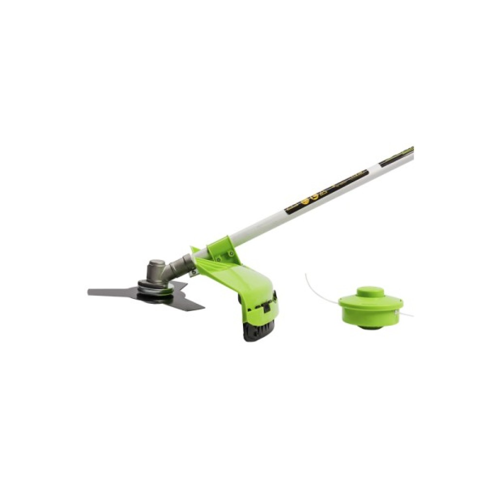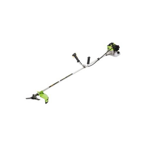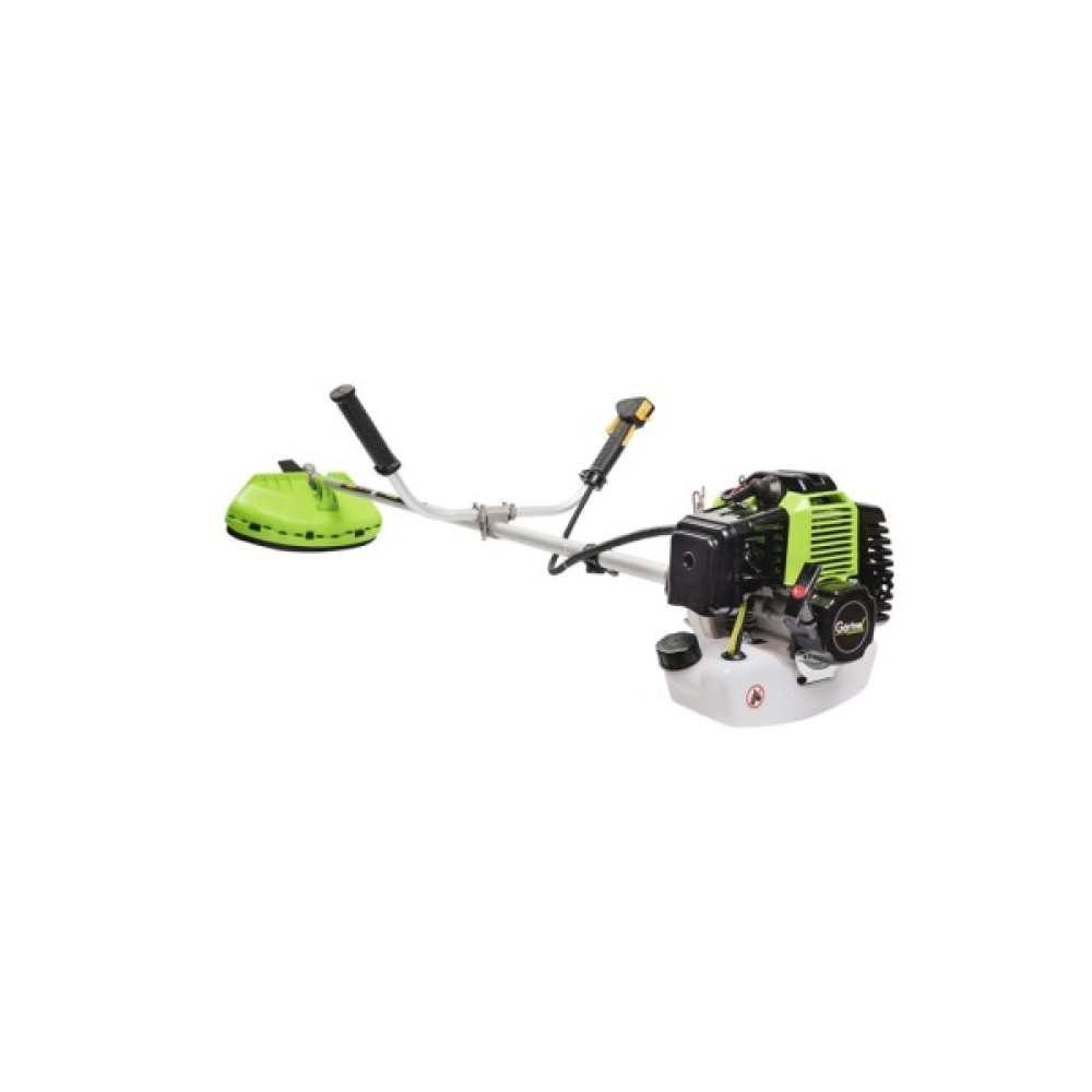 Пристрій оснащений двотактним двигуном внутрішнього згоряння. За допомогою встановлених на робочу головку ріжучої котушки або ріжучого ножа здійснюється скошування трави.