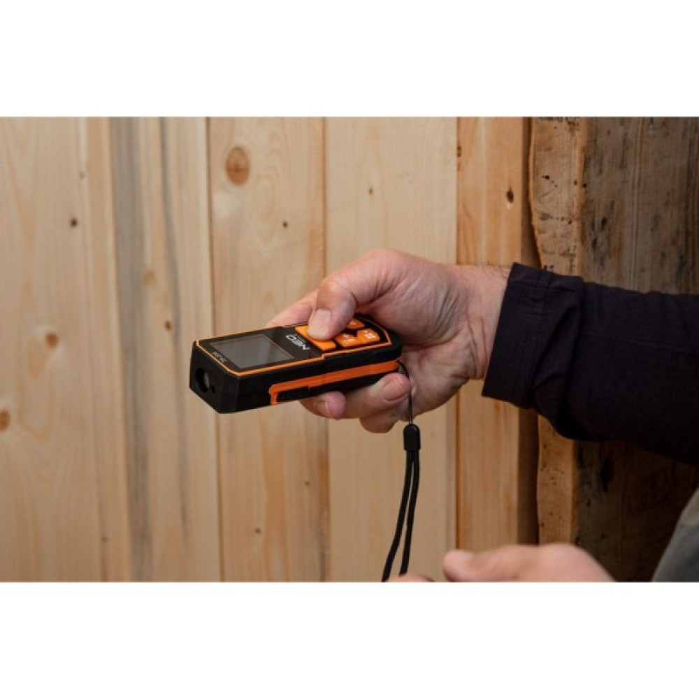 Лазерний далекомір NEO (арт. 75-204) з максимальною дальністю 60 м є приладом для вимірювання відстані, площі та об'єму. Функції далекоміра також дозволяють проводити непрямі вимірювання (з використанням теореми Піфагора), безперервні вимірювання, додавання та віднімання, вимірювання максимуму та мінімуму.