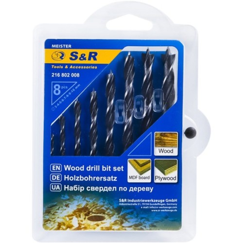 Набір свердел S&R для дерева — професійний інструмент, який використовують для твердої та м'якої деревини, фанери. Мають центрувальне вістря для точного свердління.