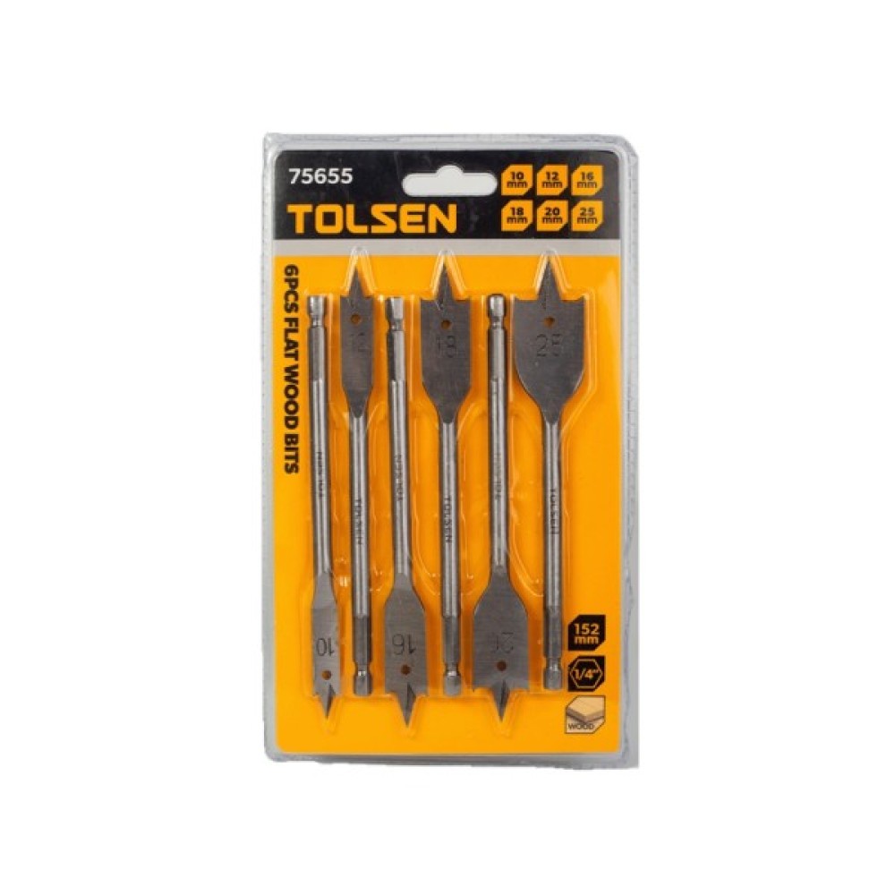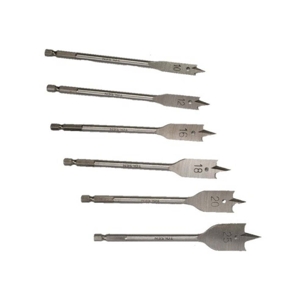 Набір свердл Tolsen пласких по дереву 6 шт 10, 12, 16, 18, 20, 25мм (75655)