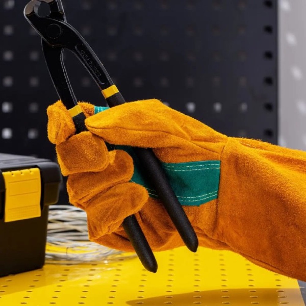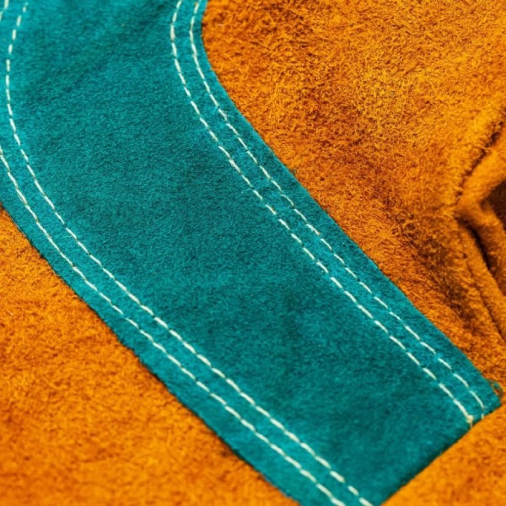 Міцні зварювальні рукавички зі шкіри спіл для надійного захисту від тепла та стирання. Посилені шви та подовжені манжети забезпечують додаткову безпеку під час інтенсивних робіт. Практичний вибір для зварювання, металообробки та роботи з високими температурами.