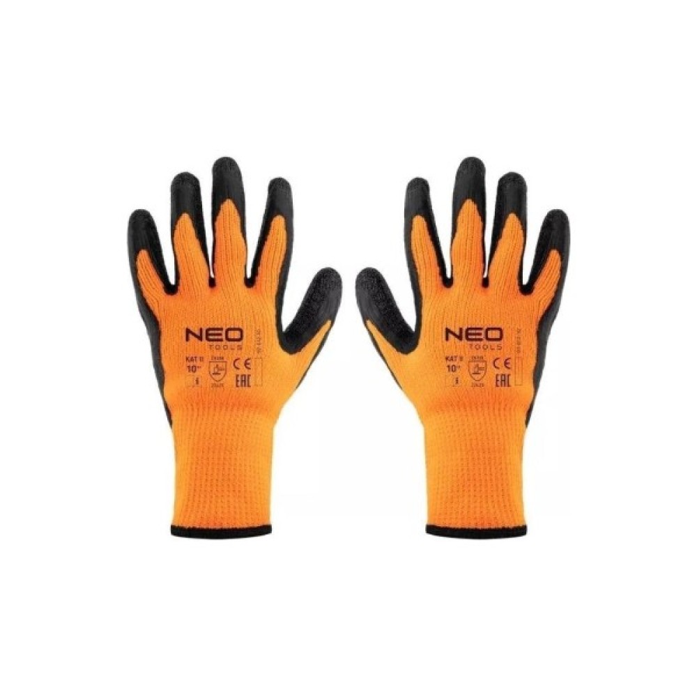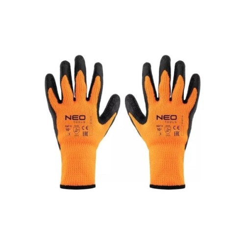 Захисні, рукавиці, Neo, Tools, латексне, покриття, поліестер, р10, помаранчево, чорні, 9761210