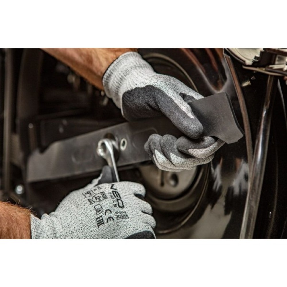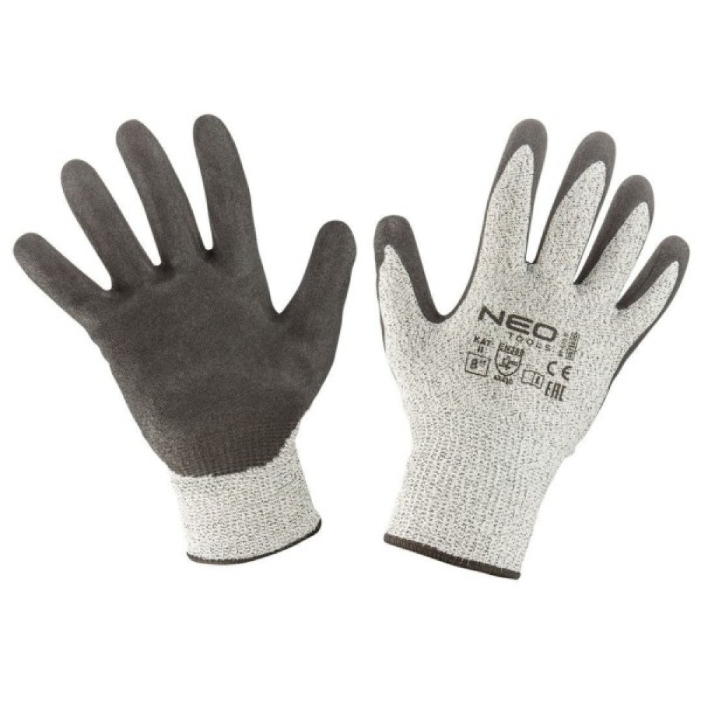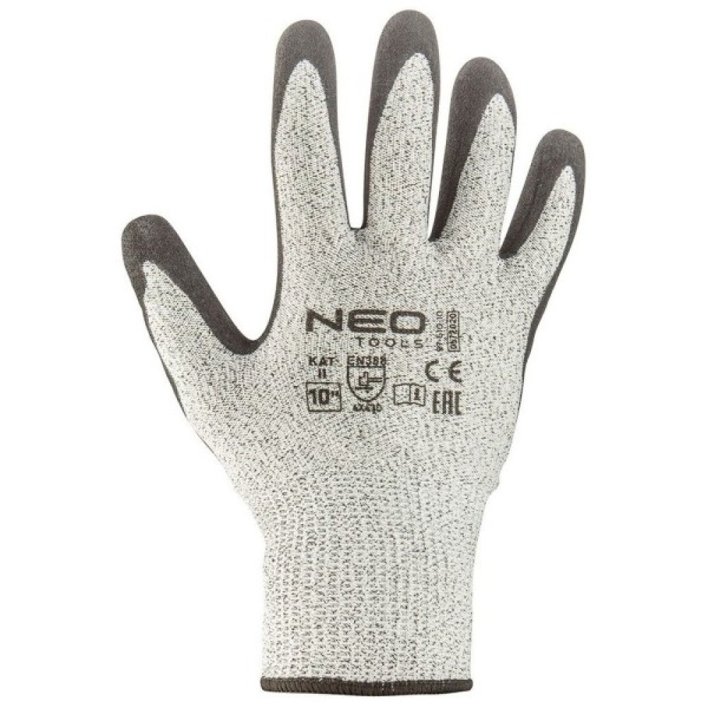 Захисні рукавиці Neo Tools нітрилове покриття, поліефірний трикотаж, р.10, сірий (97-610-10)