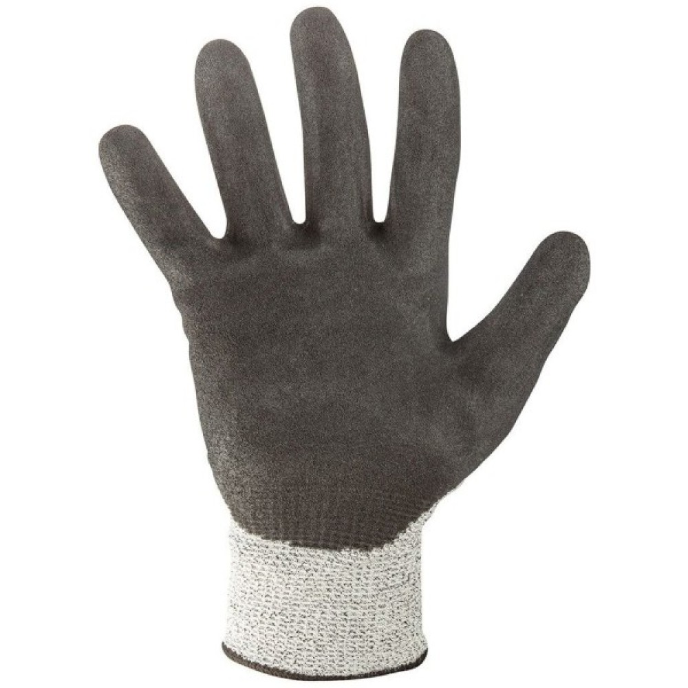 Рукавички з нітриловим покриттям проти порізів, 4X43D, розмір 10, основний матеріал: стійкий до порізів поліефірний трикотаж, покриття: нітрил, що пройшов піскоструминну обробку, стійкість до стирання (від 0 до 4) 4, поріз гострим предметом X (не застосовується), опір розриву (від 0 до 4) 4, опір проколу (від 0 до 4) 3, опір порізам згідно EN ISO 13997 D, гарне прилягання до руки, застосування: всі транспортні роботи, вантажно-розвантажувальні роботи, зберігання, зберігання, робота зі склом , листовим металом, робота складання, виготовлення дрібних елементів, DIY, автомобілебудування, садівництво, сертифікат CE на відповідність EN 390