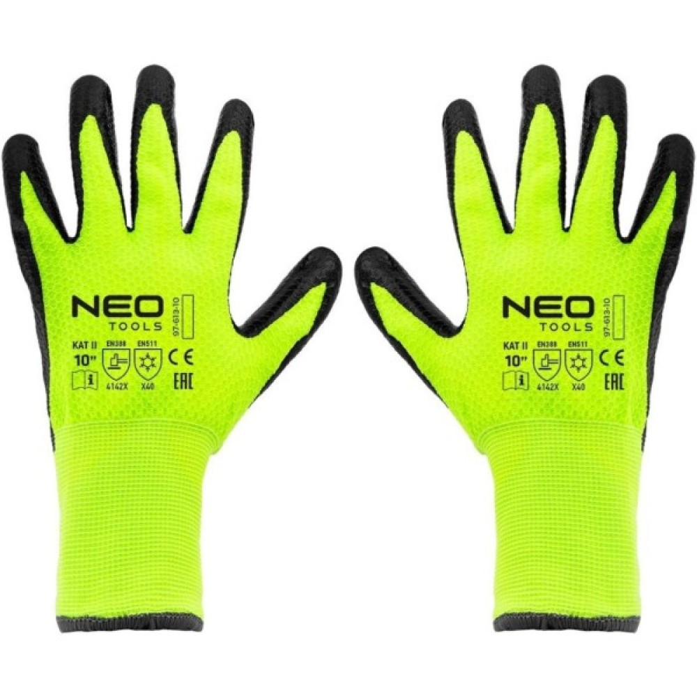 Рукавички робочі утеплені NEO – це високоякісний захисний аксесуар, розроблений для забезпечення максимального комфорту та безпеки під час виконання широкого спектра робіт. Міцний нейлон забезпечує довговічність рукавичок та стійкість до розривів. Латексне покриття надає рукавичкам додаткової міцності, захищає від стирання, бруду та вологи, а також забезпечує надійне зчеплення з різними поверхнями.