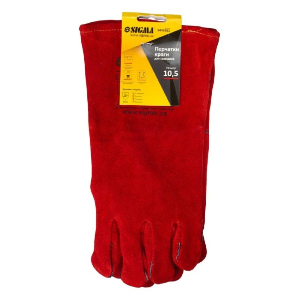 Захисні рукавиці Sigma краги зварювальника р10.5, клас НД, довжина 35см (червоні) (9449361)