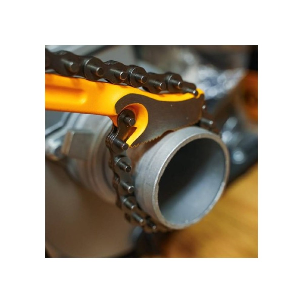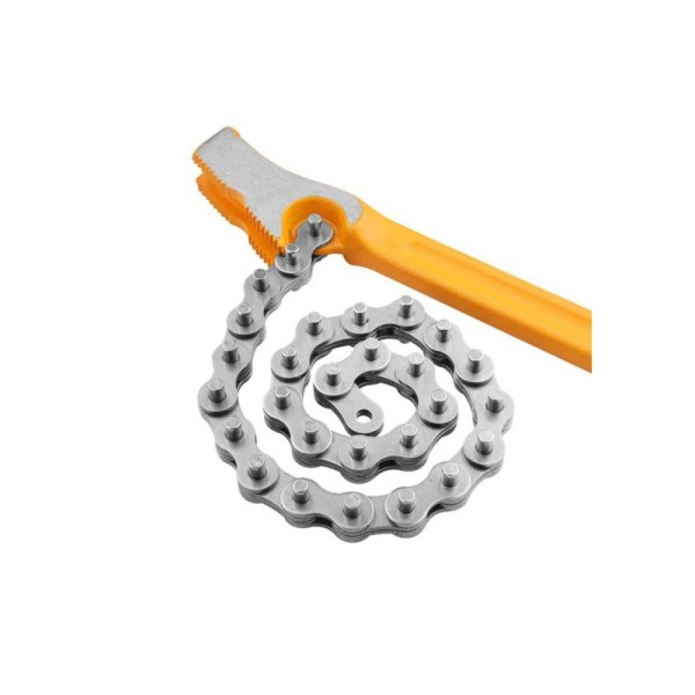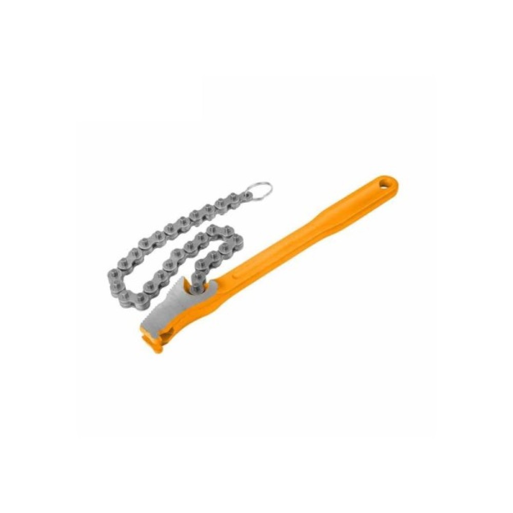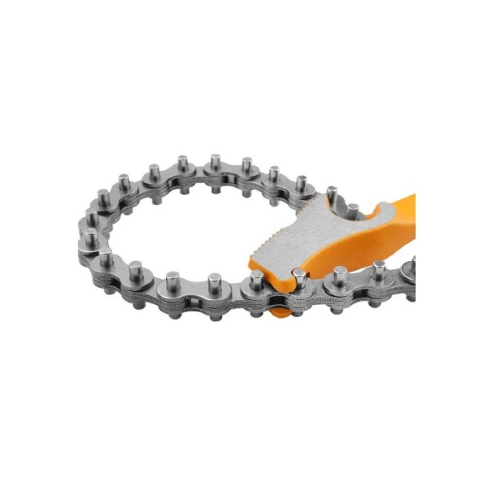 Ключ ланцюговий Tolsen Профі 300/400 мм – професійний інструмент для роботи з трубами, фітингами та циліндричними деталями. Завдяки міцному ланцюговому механізму він забезпечує надійне охоплення навіть слизьких чи нестандартних поверхонь, що робить його незамінним у сантехнічних, монтажних та ремонтних роботах. Рукоятка завдовжки 400 мм створює достатній важіль для легкого відкручування й затягування тугих з’єднань. Виготовлений із високоміцної загартованої сталі, ключ відрізняється довговічністю та стійкістю до інтенсивних навантажень.