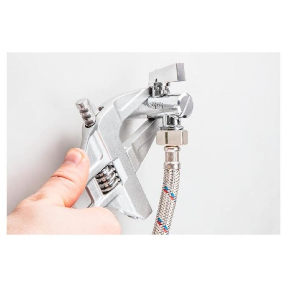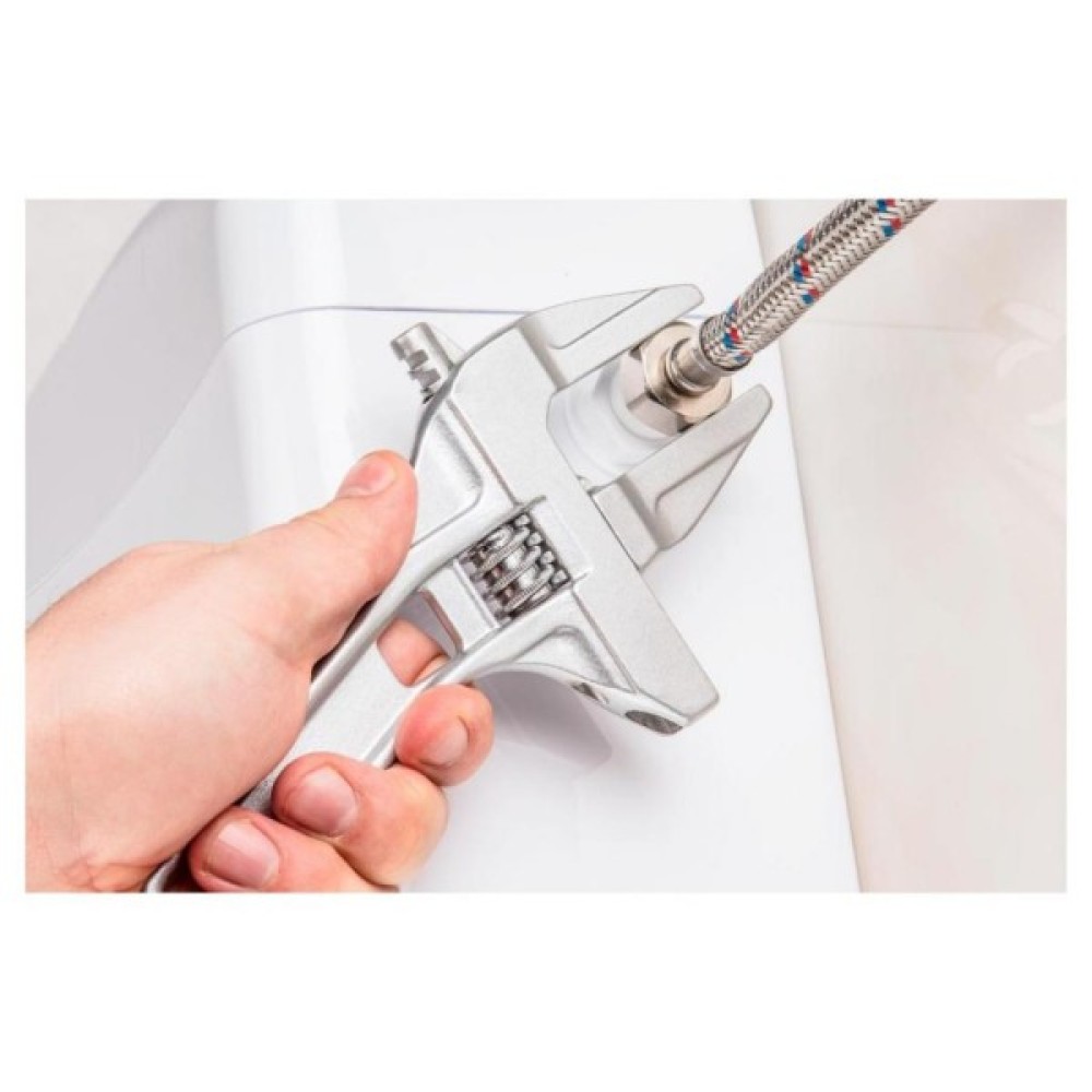 Розвідний ключ TOPEX виготовлений з алюмінію. Він відрізняється витягнутою, профільованою щелепою з дуже широким діапазоном регулювання і невеликою товщиною головної головки, що полегшує роботу в важкодоступних місцях. Коротка ручка, що підтримує широкий діапазон розмірів щелепи, дозволяє керувати ключем у місцях з обмеженим простором.
