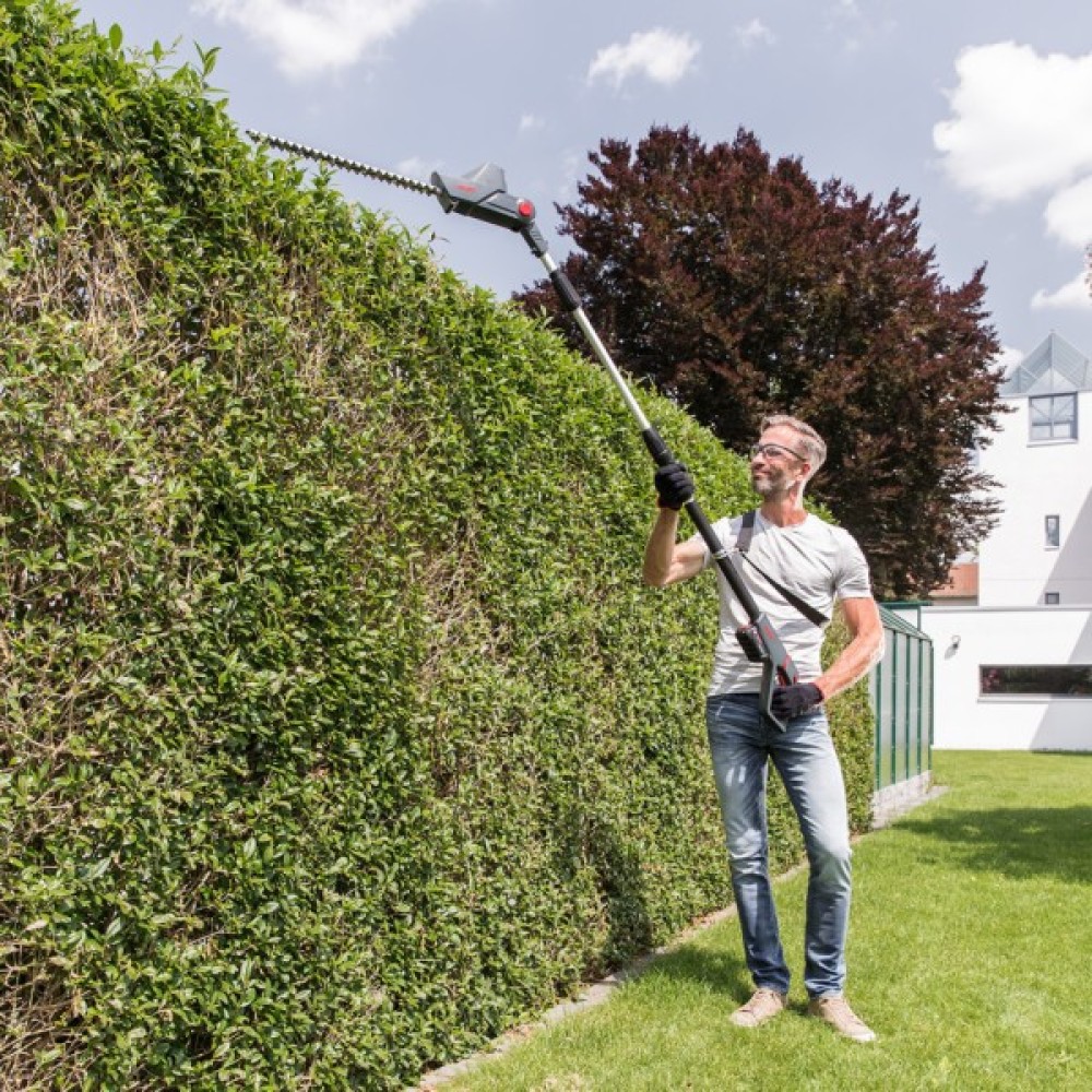 двосторонній ніж; без АКБ та ЗП; телескопічна штанга; регулювання кута нахилу ріжучої головки