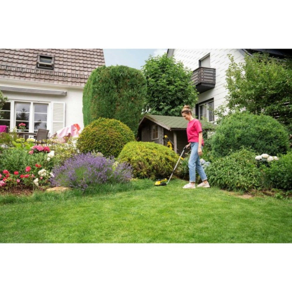 Легкі акумуляторні ножиці для трави. У комплект входить змінний акумулятор і два різні ножі. Ніж для трави шириною 8 см призначений для акуратного обрізання трави вздовж країв газонів (уздовж доріжок, клумб, терас тощо), а ніж для чагарників завдовжки 11 см - для надання форми чагарникам. Заміна ножів здійснюється легко і швидко за допомогою кнопки. Ніж для чагарників має вушко для зручного підвішування.