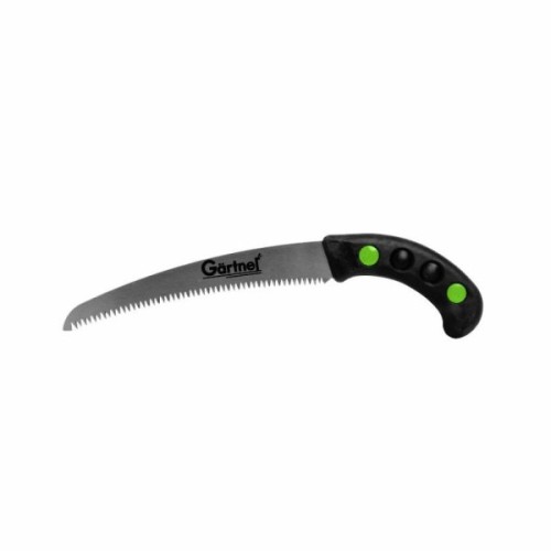 Садова пилка Gartner 460 мм являє собою якісний продуманий садовий інструмент, який стане незамінним помічником для власників саду. Виріб поставляється у комплекті з чохлом, який потрібен для безпечного зберігання і транспортування. Рукоятка виконана з ABS пластику і термо-пластикової гуми TPR. Напівкругле лезо довжиною 300 мм і товщиною 0.9 мм виготовлено зі сталі Mn65. Великі зубці мають тристоронню заточку. Пилка особливо ефективна при розпилюванні свіжої деревини, і дозволяє завжди підтримувати сад, присадибну ділянку, живопліт і двір у повному порядку.