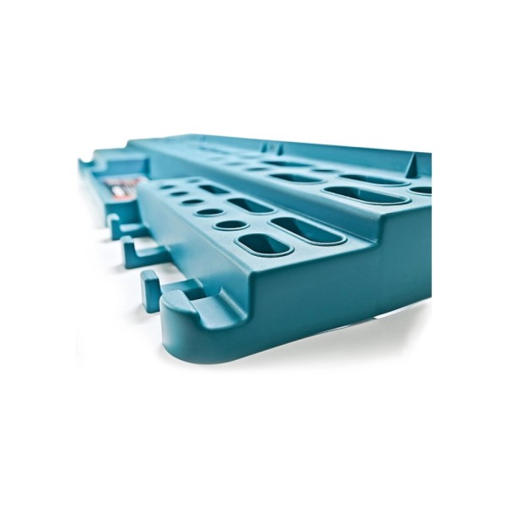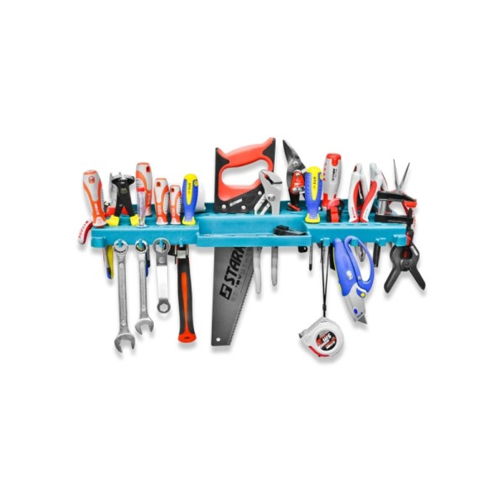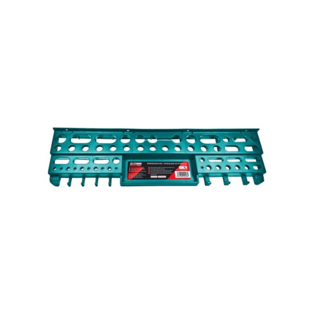 Полиця з отворами під інструмент Stark призначена для кріплення й зберігання інструментів. Міцна конструкція полиці дає змогу компактно розмістити весь необхідний інструмент поруч із робочим місцем і неабияк заощадити робочий простір. Надійне кріплення на стіну та наявність шести ребер жорсткості витримує повне завантаження всіх осередків полиці без провисань.