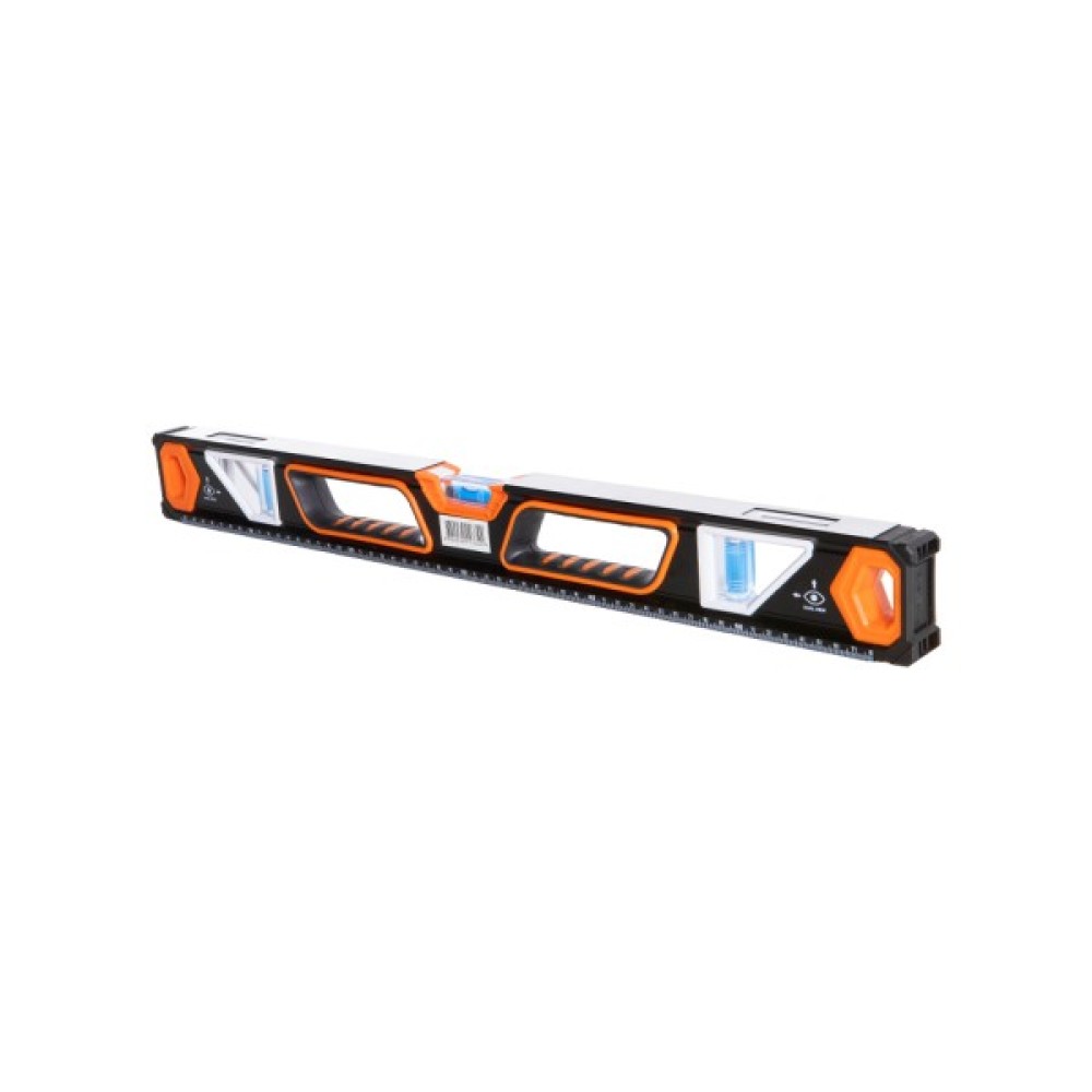 Корпус двотаврового перерізу товщиною 30 мм виготовлений з легкого ударостійкого алюмінієвого сплаву. Сильна магнітна основа дозволяє використовувати рівень при монтажі металевих конструкцій. В якості протиударних заглушок по кінцях рівня і отворах для захвату передбачені гумові накладки.