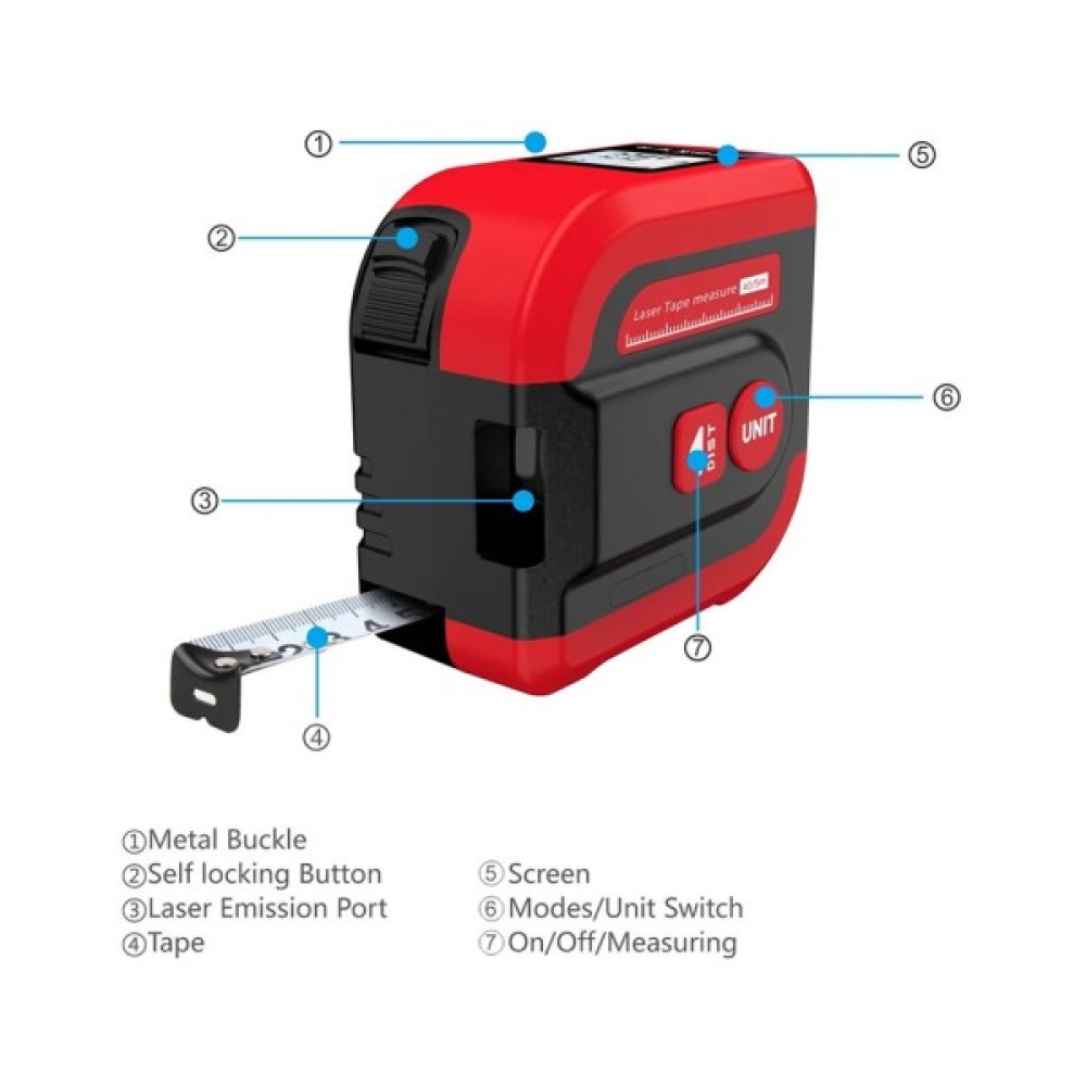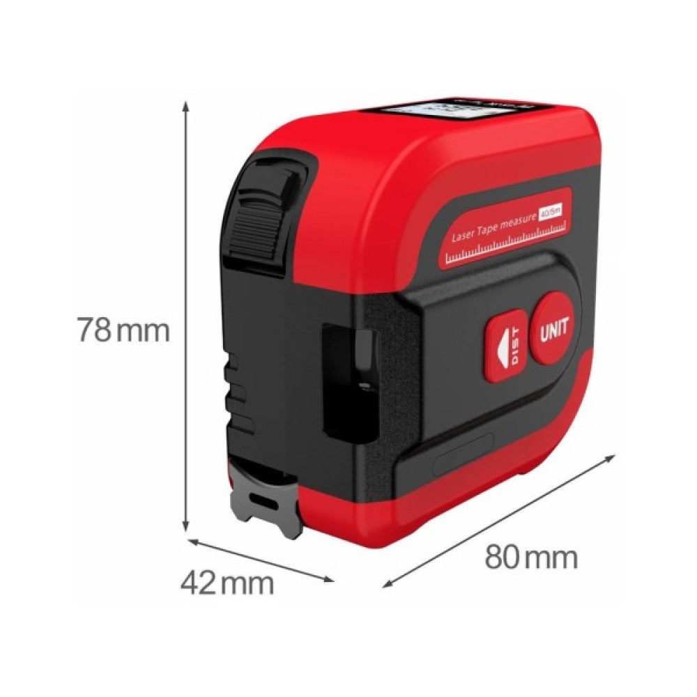 Лазерна рулетка поєднує 40-метровий лазерний вимірювач і 5-метрову рулетку. Одне натискання кнопки дозволяє швидко та легко проводити лазерні виміри на великих відстанях. Вимірює відстані до 40 м з точністю до +/-2 мм. Портативний і компактний розмір легко поміщається в руці і може висіти на поясі. Харчування: 1.5 У 2хAAA. Сертифікація Пройшов тестування на відповідність стандартам RoHS, FCC та CE, а також Noyafa сертифіковано за стандартом ISO 9001.