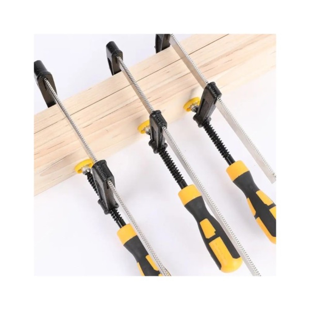 Надійна та міцнаструбцина F типу (50 x 250 мм) забезпечує силу затиску до 1000 Н. Лінійка товщиною 3,5 мм та шириною 5 мм разом із різьбовим гвинтом діаметром 9,5 мм гарантують стабільність і довговічність для точних робіт. Упакована на картонній картці — практичний інструмент для столярних робіт, монтажу та професійного використання.