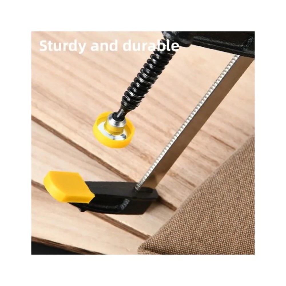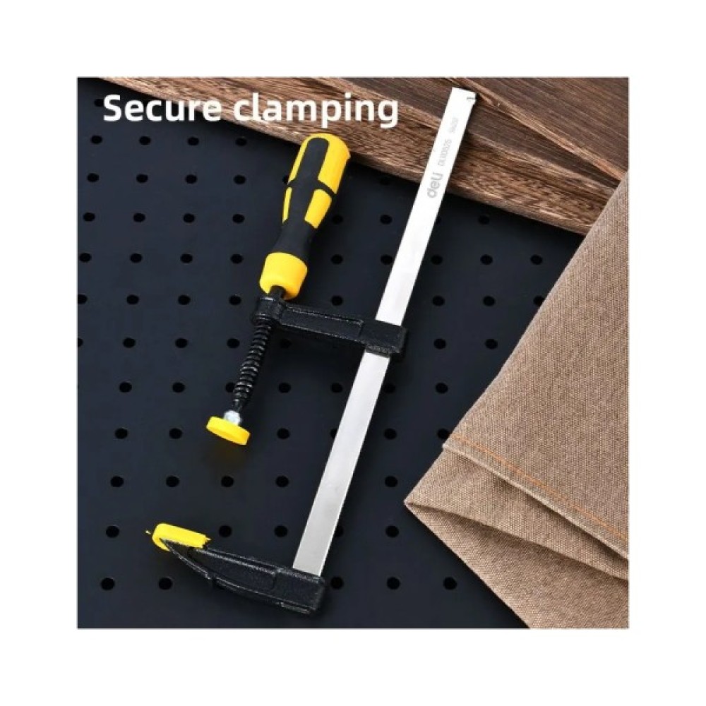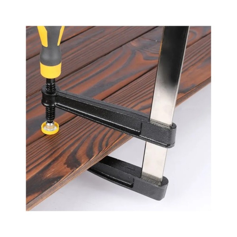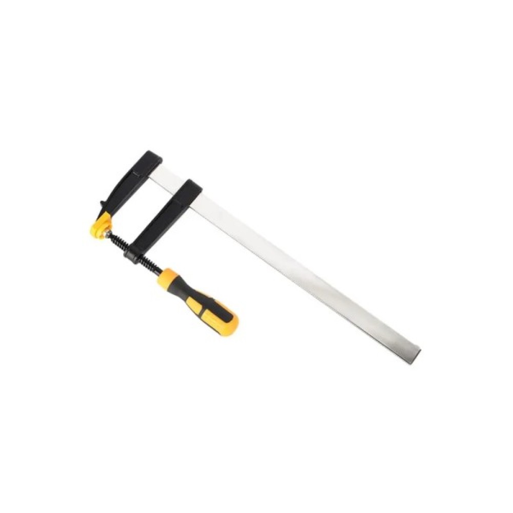 Потужна та точна — струбцина F типу (80 × 300 мм) забезпечує силу затиску до 1500 Н. Лінійка товщиною 3,5 мм та шириною 5 мм разом із різьбовим гвинтом діаметром 9,5 мм гарантують міцність і стабільність для складних завдань. Упакована на картонній картці — надійний інструмент для столярних робіт, монтажу та професійного використання.