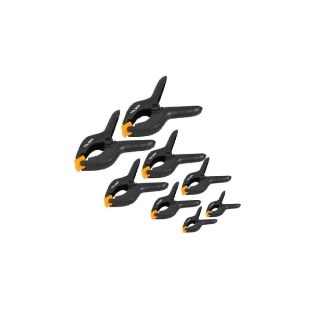 Практичний набір струбцин Tolsen — надійне рішення для фіксації деталей під час склеювання, паяння, свердління, фарбування та інших видів робіт. Струбцини виготовлені з міцного пластику, оснащені пружинним механізмом і рифленими затискними губками для надійного утримання заготовок різної форми.