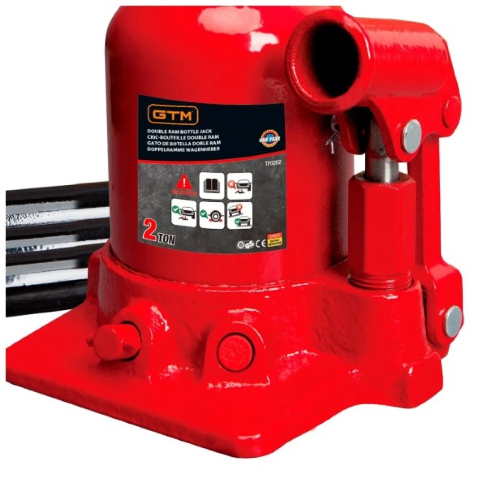 Домкрат GTM гідравлічний пляшковий 2т (150-370мм) двохштоковий (TF0202)