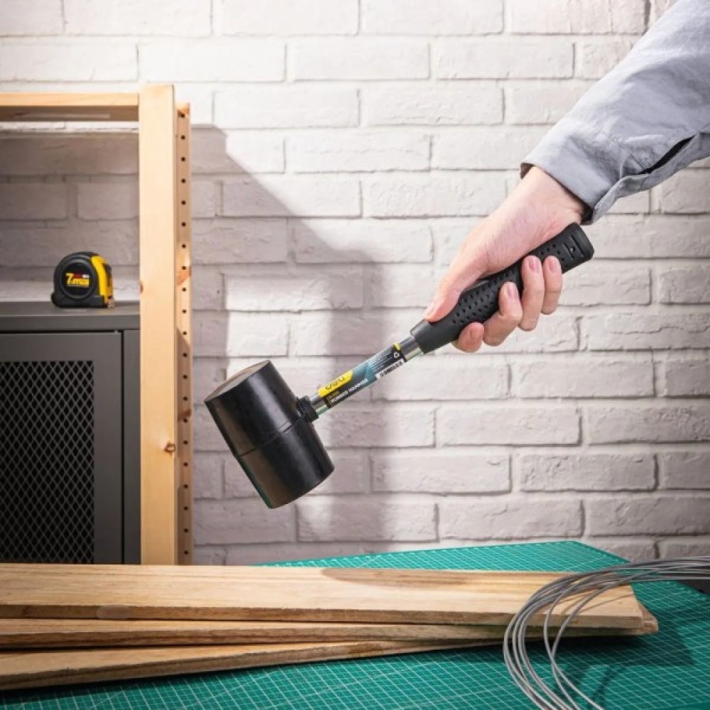 Міцна гумова киянка зі сталевою ручкою, створена для безпечних та точних ударів. Неіскрова голівка та пластикові ударні поверхні захищають матеріали від пошкоджень, а гумове покриття рукоятки забезпечує комфорт. Практичний інструмент для монтажних, будівельних та щоденних робіт.