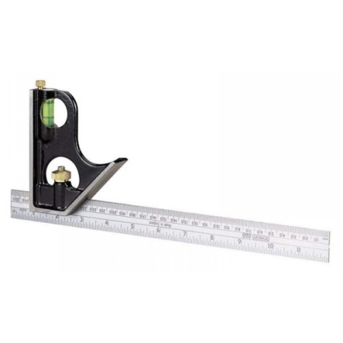 Всі поверхні фрезеровані для забезпечення високої точності. Вигравірувані шкали в мм і см і в дюймах і 1/8 "і 1/16". Може використовуватися в якості кутника, кутника для відкладання кутів 45 °, глибиноміра і спиртового рівня. Професійний комбінований кутник з литою основою для високої точності і тривалого терміну служби. Клас точності I.