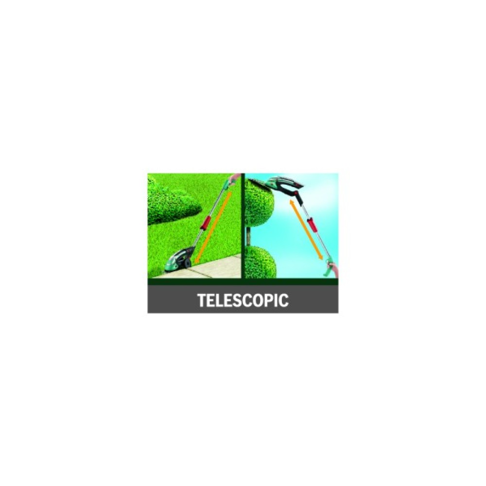 Незамінний помічник садівника - акумуляторний багатофункціональний інструмент ISIO, призначений для формування кущів і країв газону. До приладдя входить трав'яний ніж 80 мм і телескопічна рукоятка. Система "Multi-Click" спрощує заміну приладдя. Літій-іонний акумулятор 3,6 В забезпечує до 50 хвилин роботи без підзарядки, а вбудована антиблокувальна система Bosch забезпечує відсутність блокувань. Інструмент має зручну ергономічну конструкцію. При вазі всього 550 г ISIO зручний у роботі та зберіганні.