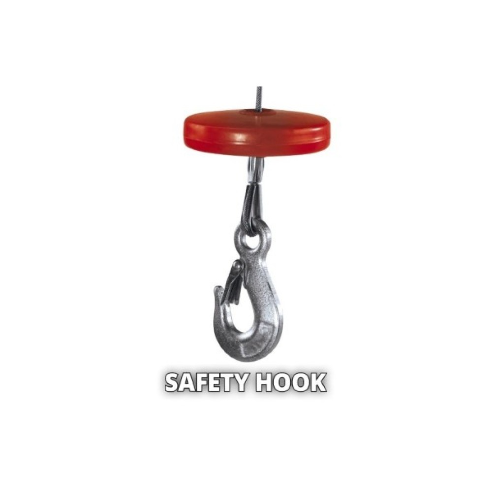 автомаавтоматичне гальмо фіксує вантаж в будь-якому положеннітичне вимикання в крайніх положеннях; запобіжник на вантажному гаку; автоматичний обмежувач маси вантажу; термостатичний вимикач