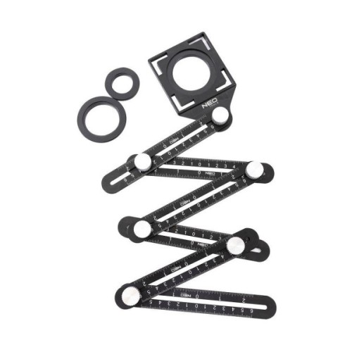 Кутова лінійка 72-351 фірми NEO - вимірювальний прилад для точного вимірювання, розмітки та картування кутів при ремонтних, будівельних та оздоблювальних роботах. Особливо корисний при укладанні дерев'яних та панельних підлог, текстильних підлогових покриттів, плитки, обклеюванні шпалер тощо.